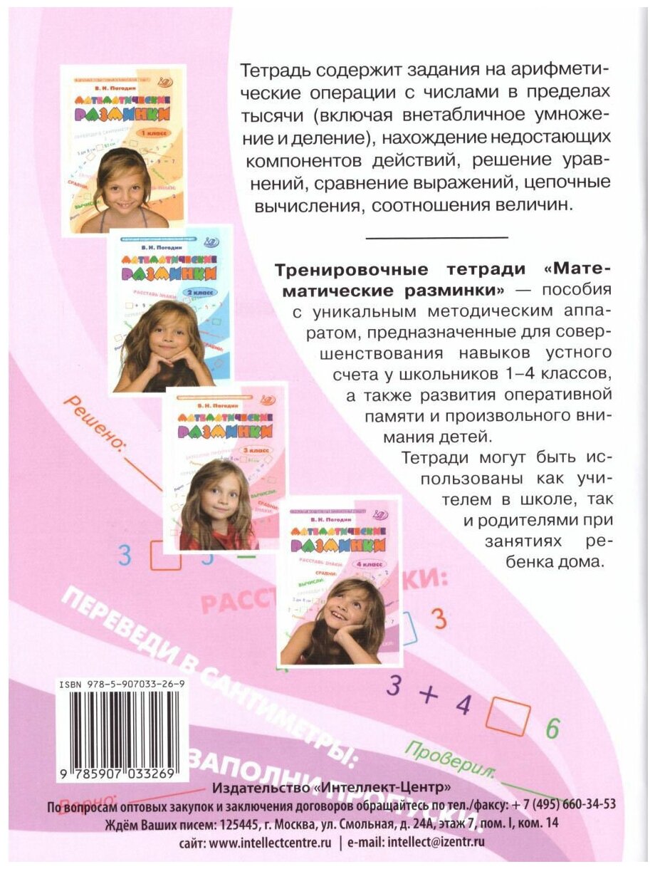 Математические разминки. 4 класс. Тренировочная тетрадь. (Погодин Владимир Николаевич); Интеллект-Центр, 2022