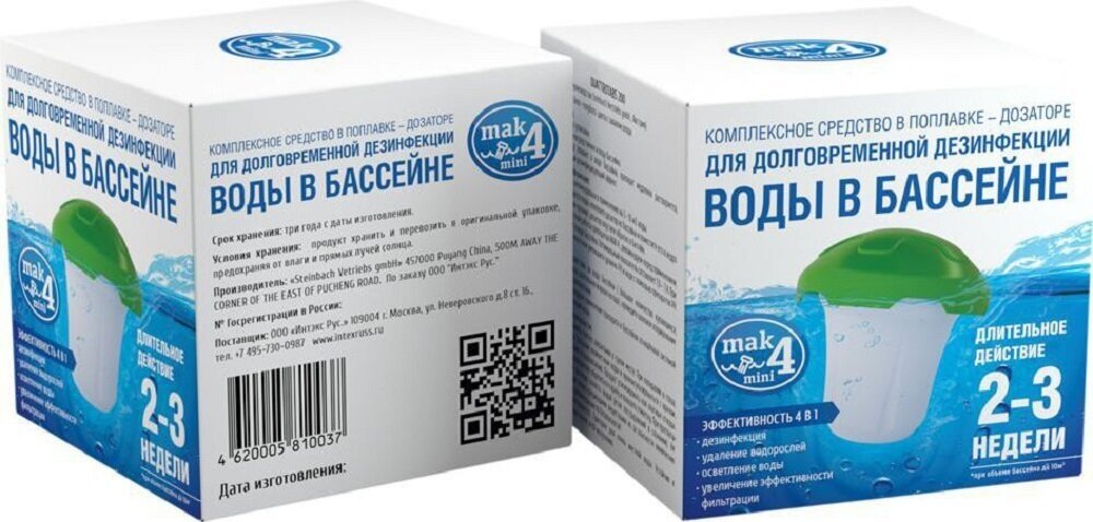 Защита уход и аксессуары Mak Комплексное средство для дезинфекции воды в бассейне Mak4mini в поплавке-дозатор
