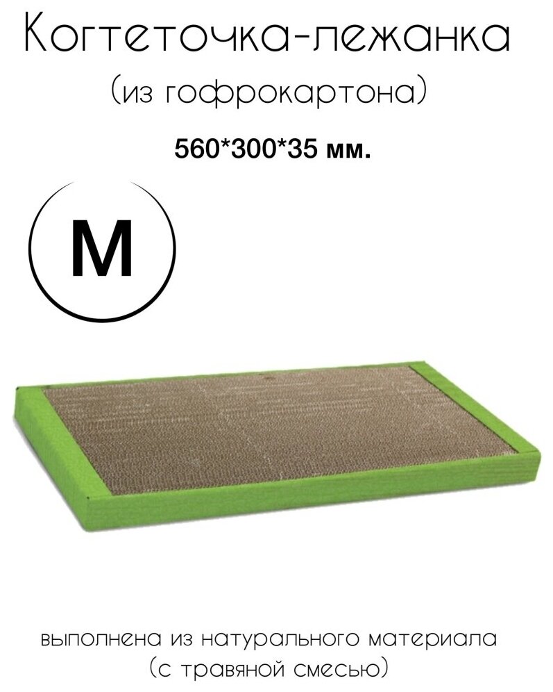 Когтеточка-лежанка для кошек изготовлена из гофрокартона. В комплекте - пакетик с травяной смесью. Упакована в термоусадочную пленку.