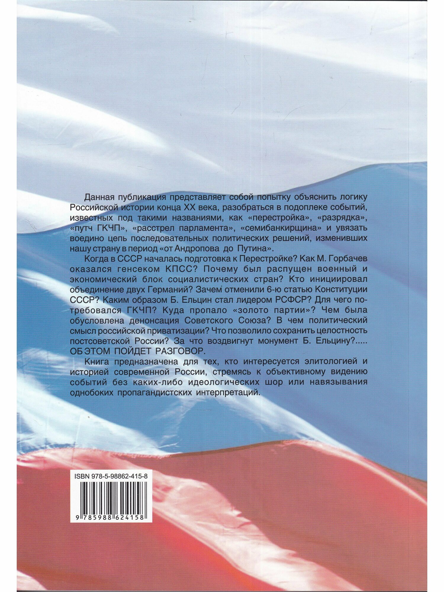 Когда в СССР началась подготовка к Перестройке? Как Михаил Горбачев оказался генсеком КПСС? Почему был распущен военный и экономический блок социалистических стран? Кто инициировал объединение двух Германий? Зачем отменили 6-ю статью Конституции СССР? Каким образом Борис Ельцин стал лидером РСФСР? Для чего потребовался ГКЧП? Куда пропало "золото партии"? Чем была обусловлена денонсация Советского Союза? В чем политический смысл российской приватизации? Что позволило сохранить целостность постсоветской России? За что воздвигнут монумент Борису Ельцину? Об этом и о многом другом пойдет разговор на страницах данной книги.