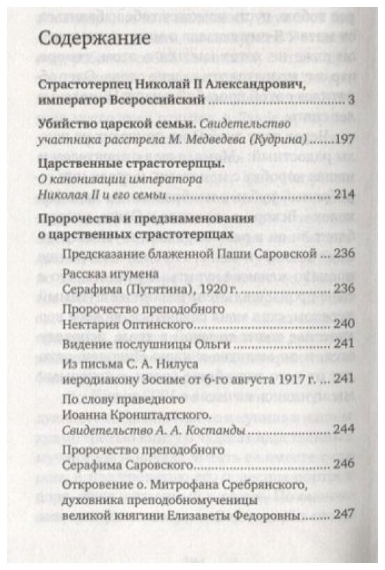В настоящее издание включен обширный биографический очерк о государе, подробно рассказывается об обстоятельствах канонизации царственных страстотерпцев, приводятся свидетельства о пророчествах и чудесах по молитвам к последнему русскому царю и членам его августейшей семьи.