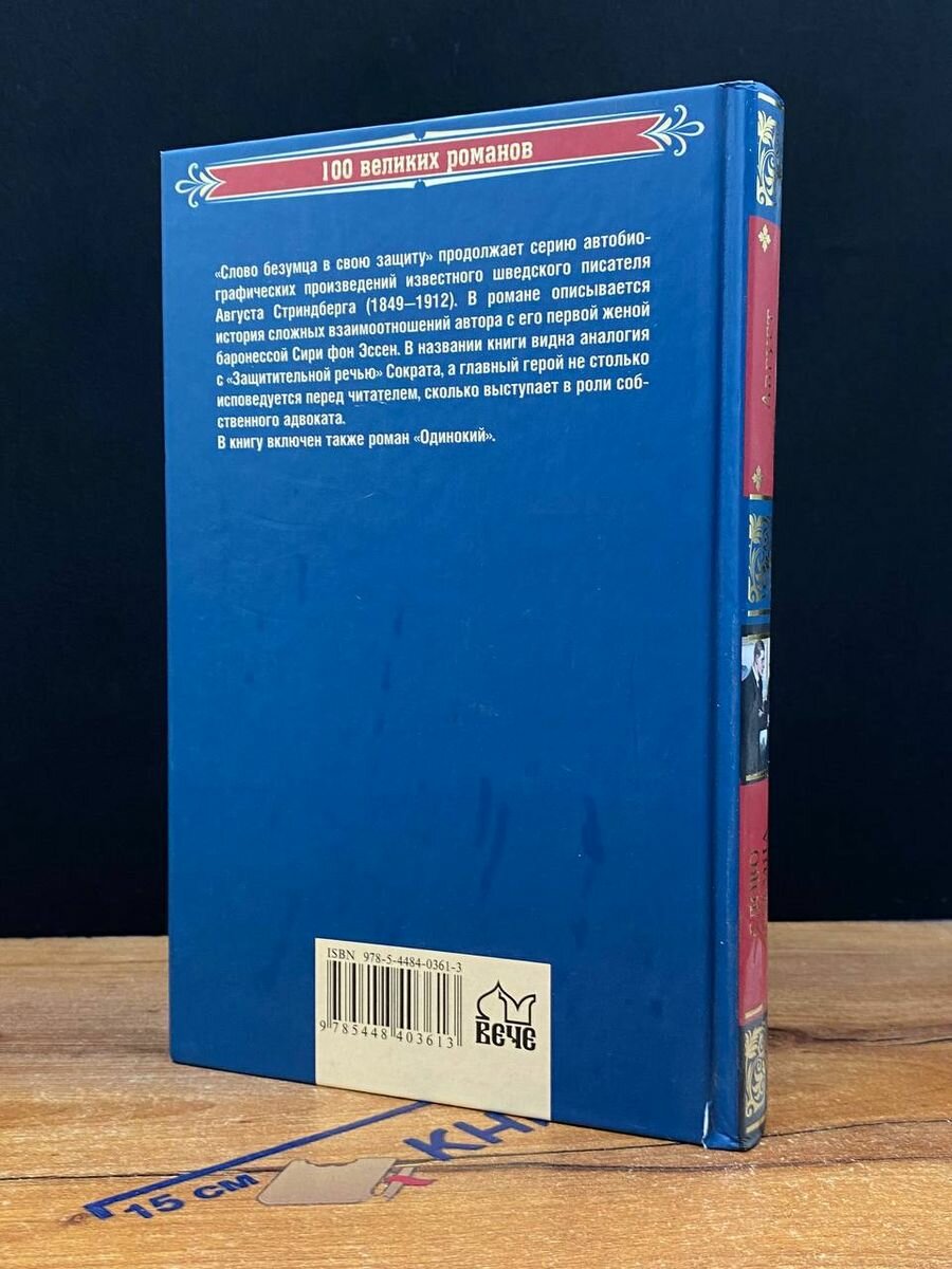 "Слово безумца в свою защиту" продолжает серию автобиографических произведений известного шведского писателя Августа Стриндберга (1849-1912). В романе описывается история сложных взаимоотношений автора с его первой женой баронессой Сири фон Эссен. В названии книги видна аналогия с "Защитительной речью" Сократа, а главный герой не столько исповедуется перед читателем, сколько выступает в роли собственного адвоката.