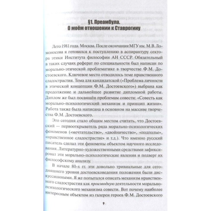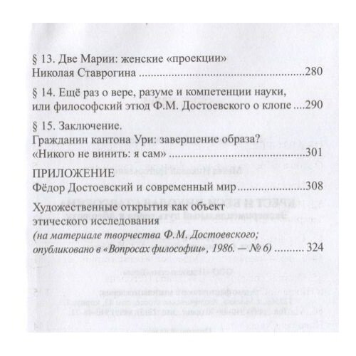 Примечательно, что содержание книги далеко выходит за рамки достоевсковедения. Так, при глубинном погружении в личность Ставрогина ( "Князя") автор касается фундаментальных экзистенциальных проблем: жизни и смерти, добра и зла, веры и неверия...,что вновь побуждает задуматься: что есть человек, для чего вообще существует в мироздании? А вопрос - взрывоопасный, поскольку весьма влиятельные круги пытаются навязать во всем мире теории трансгуманизма, низводящие человека либо до робота, либо муравья..