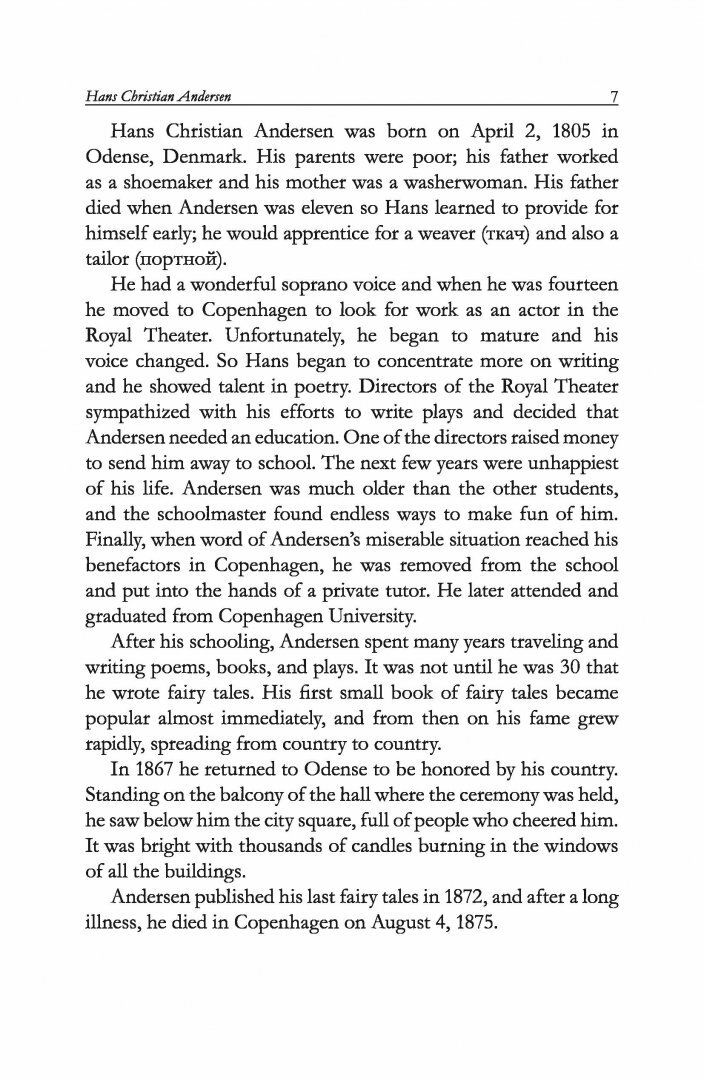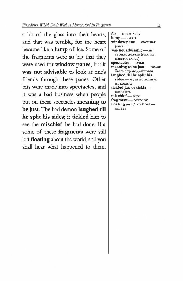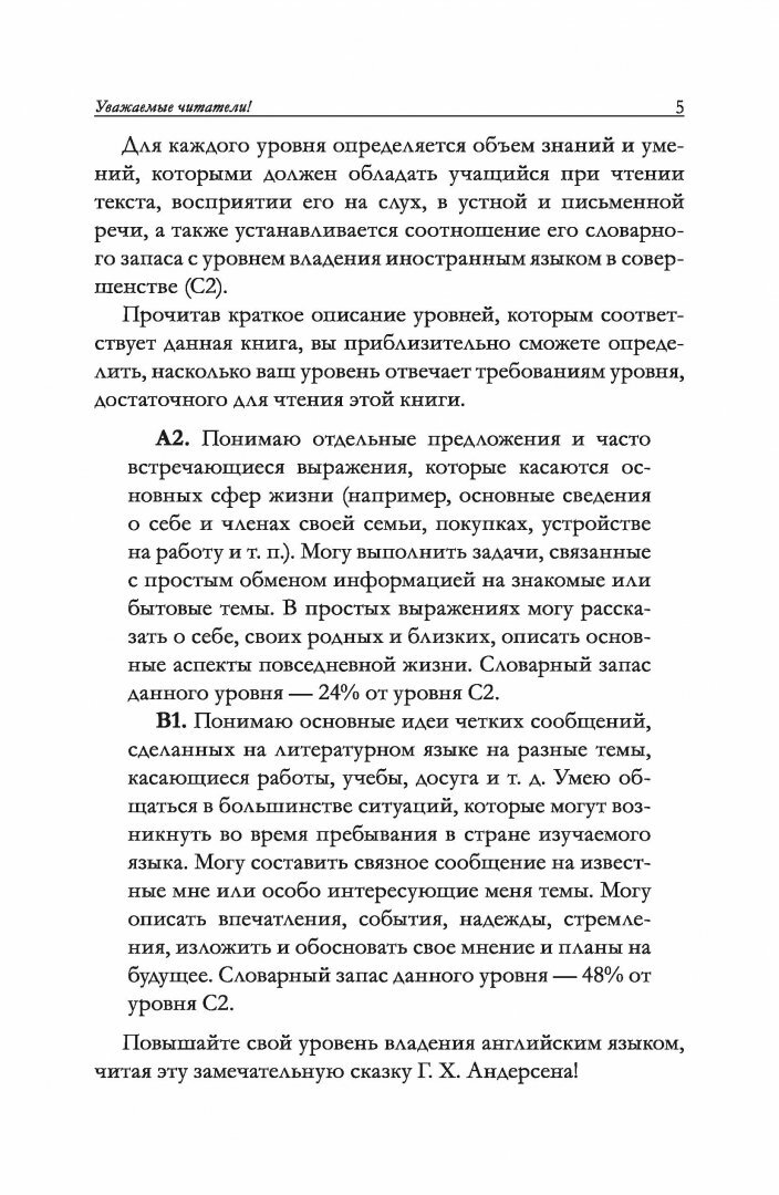 "Снежная королева" Андерсена, знакомая всем нам с детства, не только напомнит трогательную историю о любви и дружбе, но и поможет изучающим английский язык пополнить словарный запас. Чтобы облегчить чтение и понимание текста, каждая страница сопровождается переводом отдельных слов и необходимыми комментариями, а в конце книги приводится англо-русский словарь, содержащий большинство употребляемых слов. В отличие от двуязычных изданий она позволяет читателю самому интерпретировать значения слов в зависимости от контекста и, таким образом, не только делает приятным чтение на иностранном языке, но и развивает языковые навыки. Согласно общеевропейской шкале языковой компетенции, по степени сложности книга соответствует уровню владения английским между А2 и В1. Повышайте свой языковой уровень, читая эту замечательную сказку Андерсена!