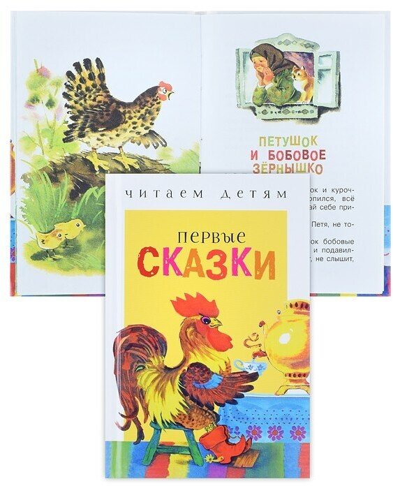 Книжка оказалась очень небольшой по размеру. В принципе, ребёнку держать удобно. Сказок всего четыре. Действительно, её стоит рассматривать как "первую" книжку со сказками. Если ребёнок старше трёх лет - ему явно будет неинтересно. Иллюстрации хорошие, добрые, не слишком яркие. Иллюстраций много.