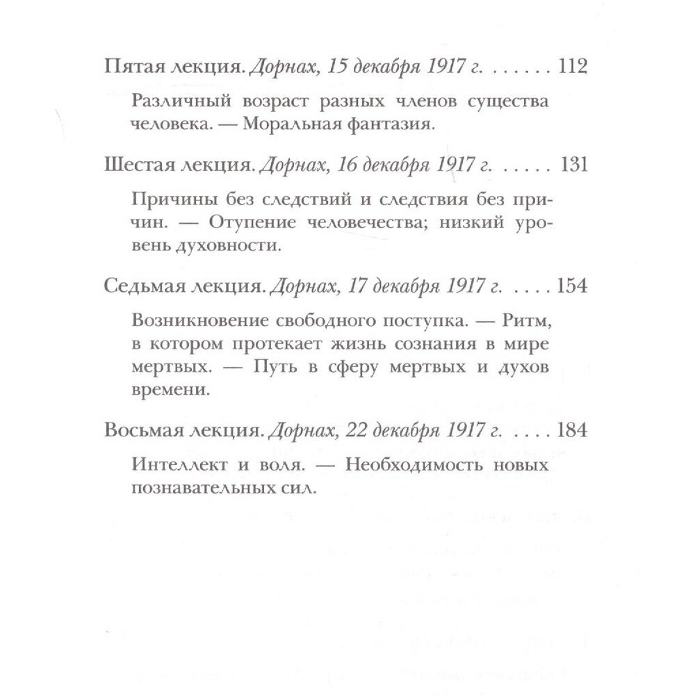 Как и кем формируется наша судьба? И из какого мира? Рудольф Штайнер показывает, что на события нашей жизни влияют обитатели духовного мира, к которым относятся также и умершие люди. В связи с этим затрагиваются вопросы, где в человеке проходит граница между физическим и духовным и какой частью своего существа мы пребываем в духовном мире. Кроме того Рудольф Штайнер объясняет, что на самом деле представляют сенсорные и моторные нервы, как образуются воспоминания, что такое истинное "Я" человека и как оно соотносится с его представлениями о собственном "Я", как в человеке проявляется полярность "интеллект - воля", что такое моральная фантазия, в чем заключается необходимое условие свободы и как возникает свободный поступок.