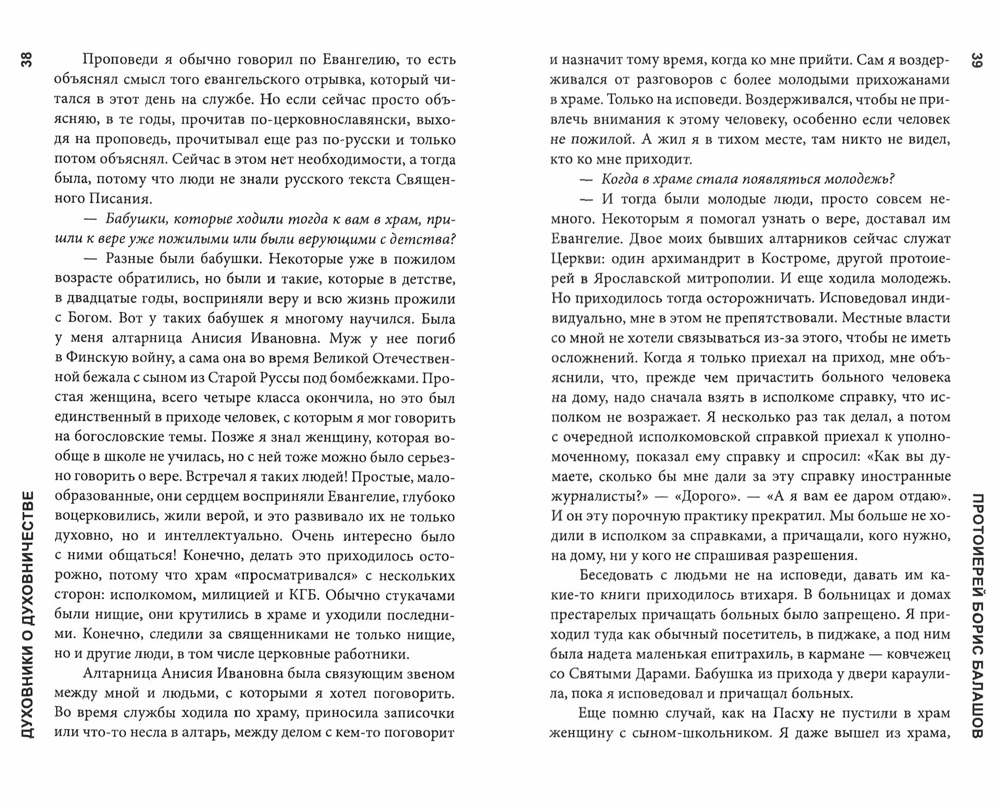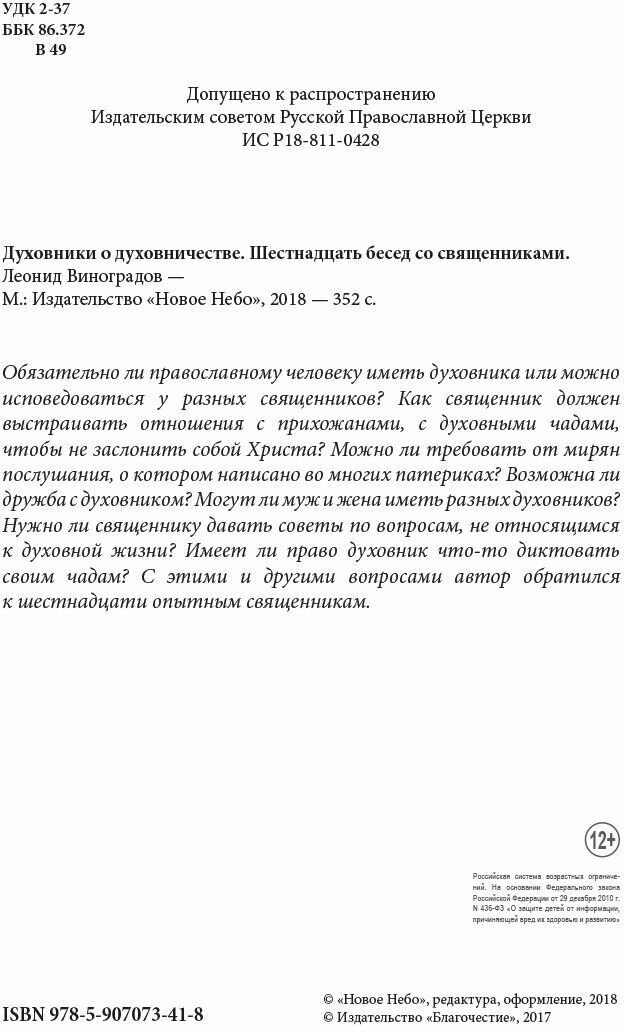 Обязательно ли православному человеку иметь духовника или можно исповедоваться у разных священников? Как священник должен выстраивать отношения с прихожанами, с духовными чадами, чтобы не заслонить собой Христа? Можно ли требовать от мирян послушания, о котором написано во многих патериках? Возможна ли дружба с духовником? Могут ли муж и жена иметь разных духовников? Нужно ли священнику давать советы по вопросам, не относящимся к духовной жизни? Имеет ли право духовник что-то диктовать своим чадам? С этими и другими вопросами автор обратился к шестнадцати опытным священникам.