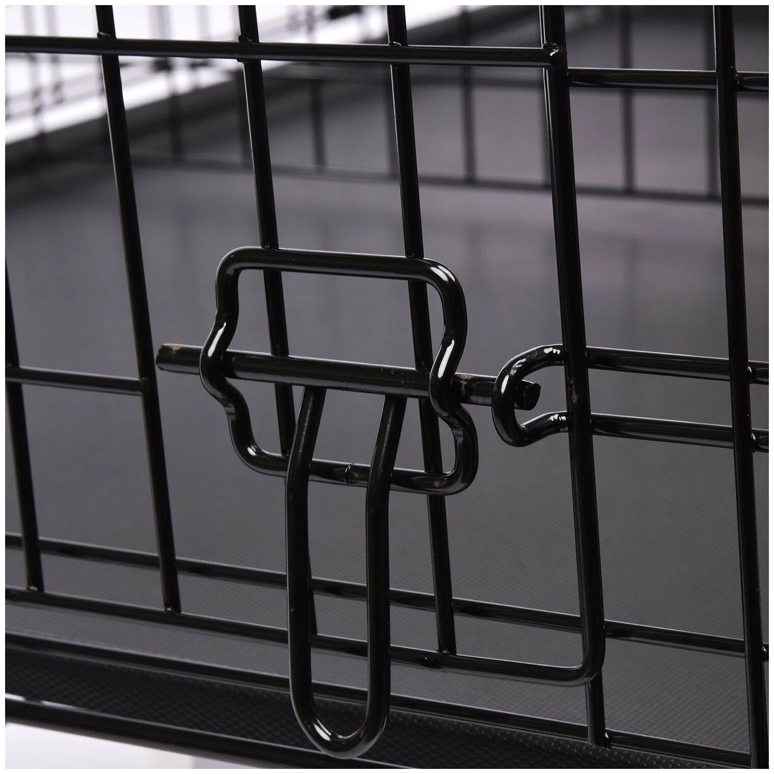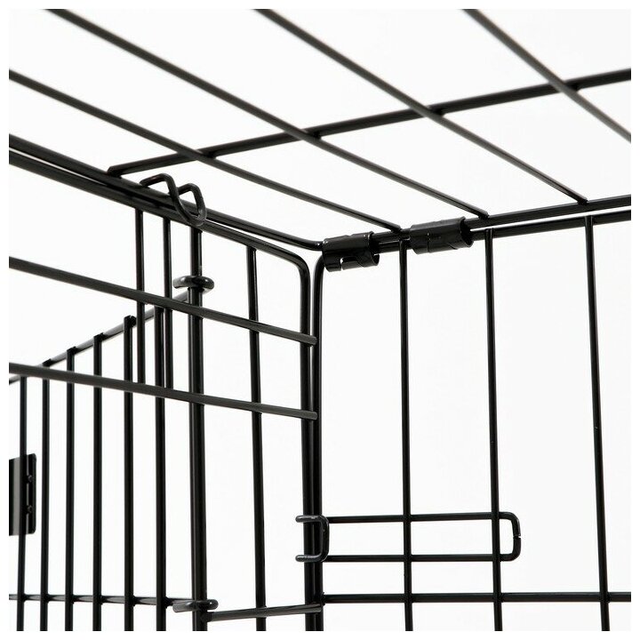 Midwest iCrate клетка 106х71х76h см черная 1 дверь.Клетка для домашних животных iCrate с одной дверью. Клетка выполнена из качественного метала, обеспечивающего безопасность собаки и хозяина. Безопасный двойной замок задвижка закрывает и снаружи и внутри. В комплект включены: разделяющая панель, пластиковый поддон и специальные пластиковые ручки для удобной транспортировки клетки в сложенном виде. Закругленная угловая защита клетки обеспечивает безопасность питомцам и людям и не повреждает поверхность, на которой размещается. Разделяющая панель позволяет создавать универсальные отсеки. Поддон из композитного пластика легко моется. Клетка легко устанавливается и складывается без использования инструментов. В сложенном виде занимает мало места. Размер клетки - 106х71х76h см. Вес - 14,3 кг (16 кг вес с упаклвкой). Цвет клетки - черный. Толщина прутьев: 3, 7, 9, 11 мм. Размер ячейки между прутьями: 3,8х14см.