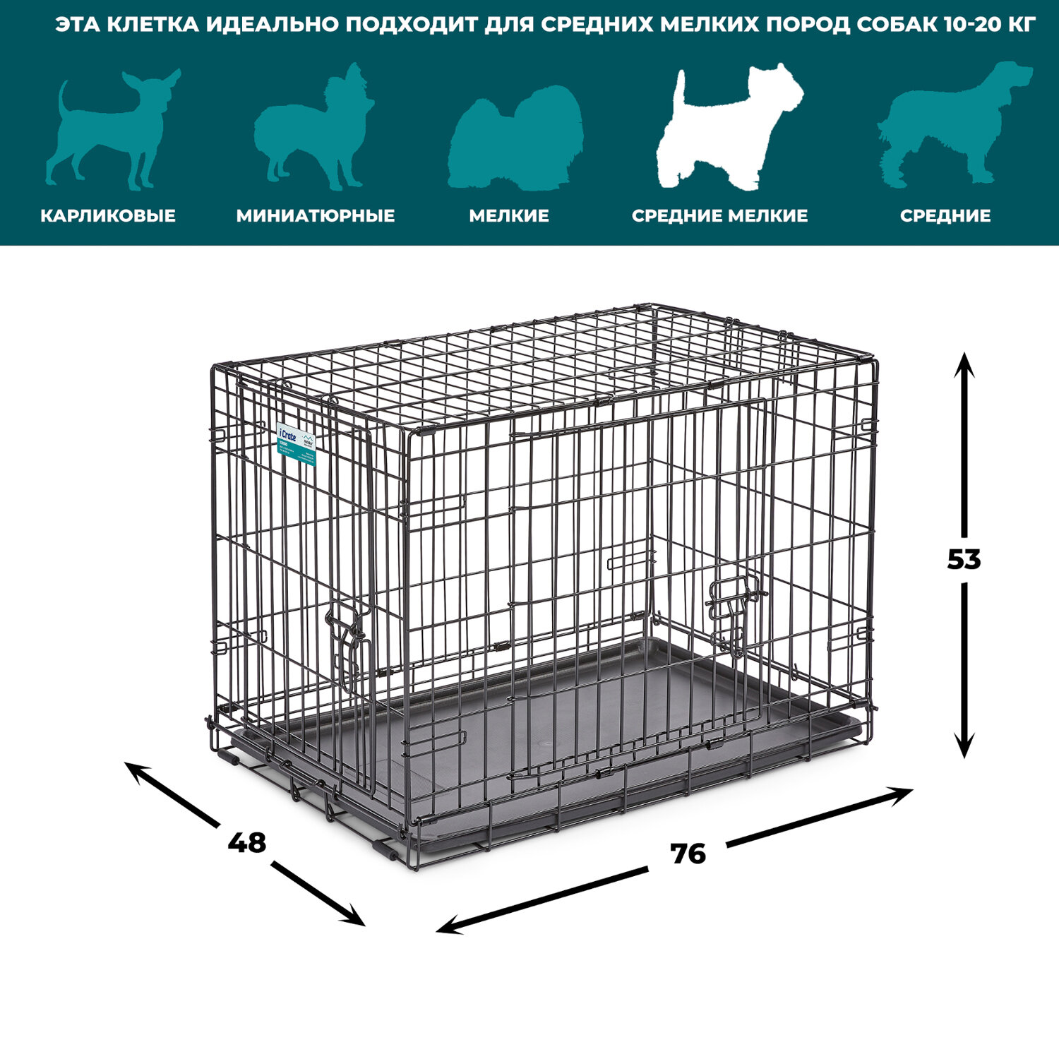 На сегодняшний день товар «MidWest Клетка для собак iCrate 2 дверичерный76*48*53см iCrate, размер 4, 7.8 кг, размер 76х48х53см., черный» можно купить с кешбеком в 1 магазине: Яндекс.Маркет