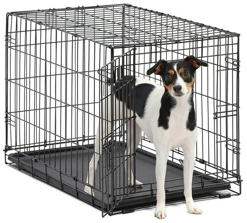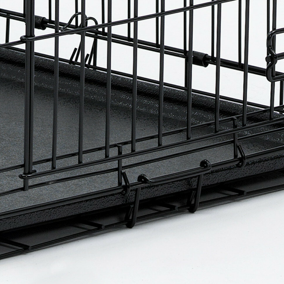 Midwest iCrate клетка 76х48х53h см черная 2 двери.Клетка для домашних животных iCrate с двумя дверьми. Устойчивая, крепкая клетка выполнена из качественного метала, обеспечивающего безопасность животного и хозяина. Двери расположены на смежных боковых сторонах клетки. Удобный, крепкий двойной замок-задвижка позволяет закрыть клетку как снаружи, так и изнутри. В комплект включены: разделяющая панель, пластиковый поддон и специальные пластиковые ручки для удобной транспортировки клетки в сложенном виде. Закругленная угловая защита клетки обеспечивает безопасность питомцам и людям и не повреждает поверхность, на которой размещается. Разделяющая панель позволяет создавать универсальные отсеки. Поддон из композитного пластика легко моется. Клетка легко устанавливается и складывается без использования инструментов. В сложенном виде занимает мало места. Размер клетки - 76х48х53h см. Вес - 7,8 кг (8,8 кг вес с упаковкой). Цвет - черный.