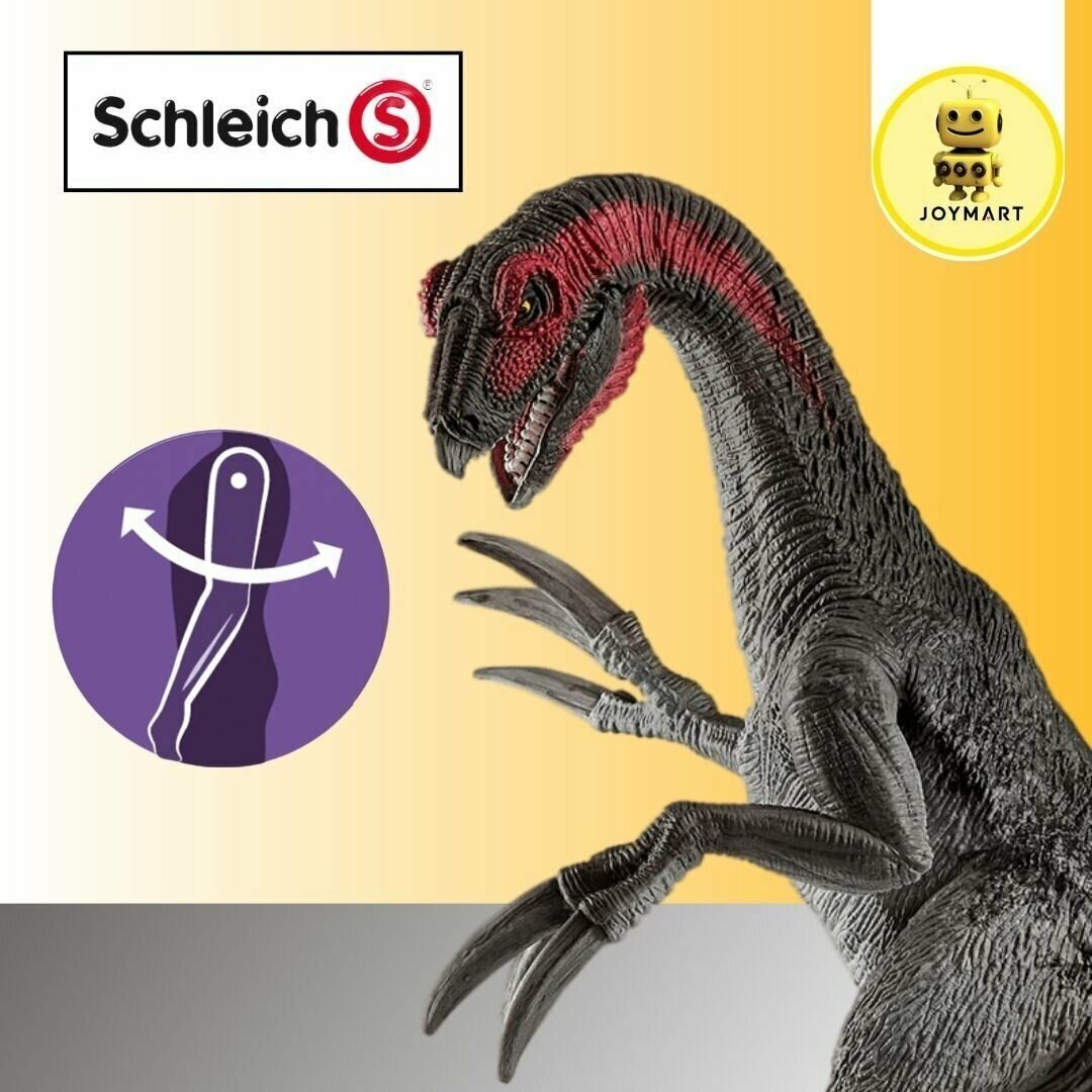 Благодаря реалистичному исполнению фигурки от компании «Schleich» дети смогут пополнить свою коллекцию динозавров и познакомить с внешними особенностями Теризинозавра, обитающего на нашей планете в конце мелового периода. Животное имеет грозный вид, несмотря на то, что этот вид был травоядным. У ящера мощные задние лапы и недоразвитые передние конечности с длинными когтями.