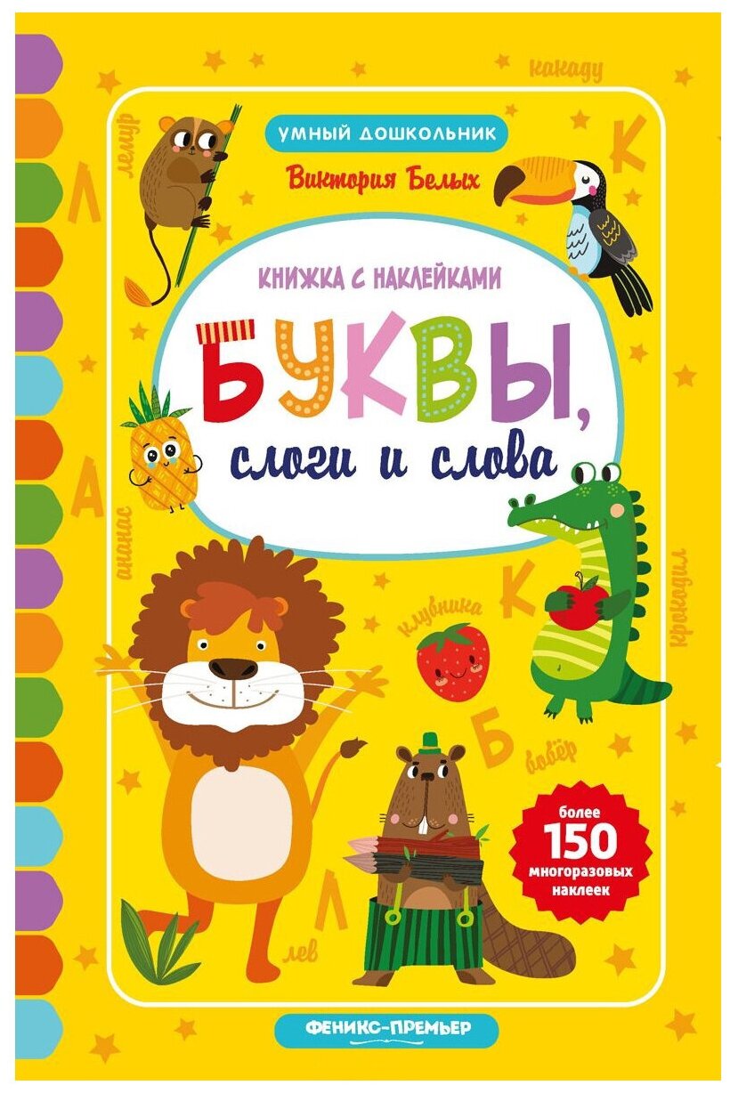 Буквы слоги и слова. Книжка с наклейками (Белых Виктория Алексеевна); Феникс, 2018