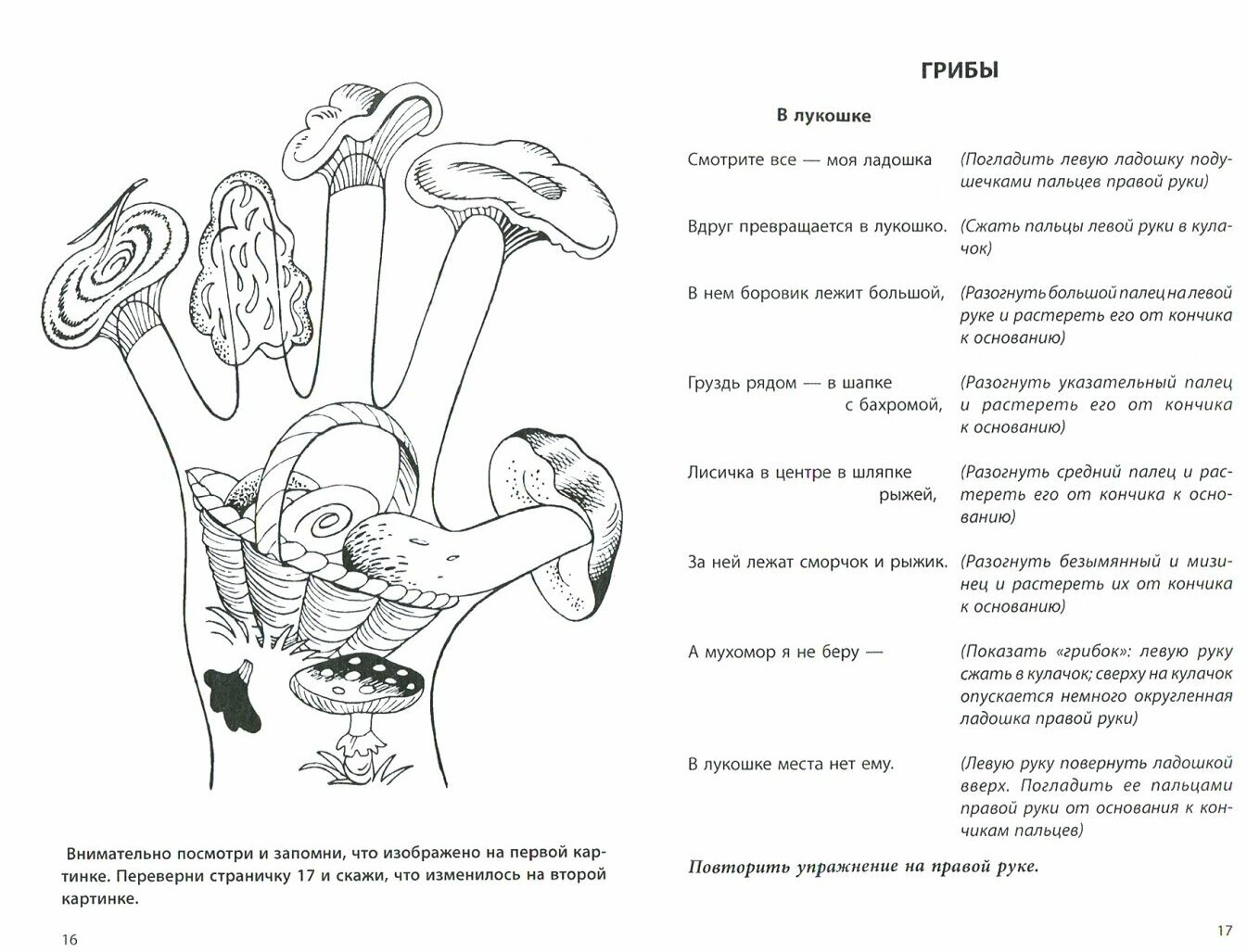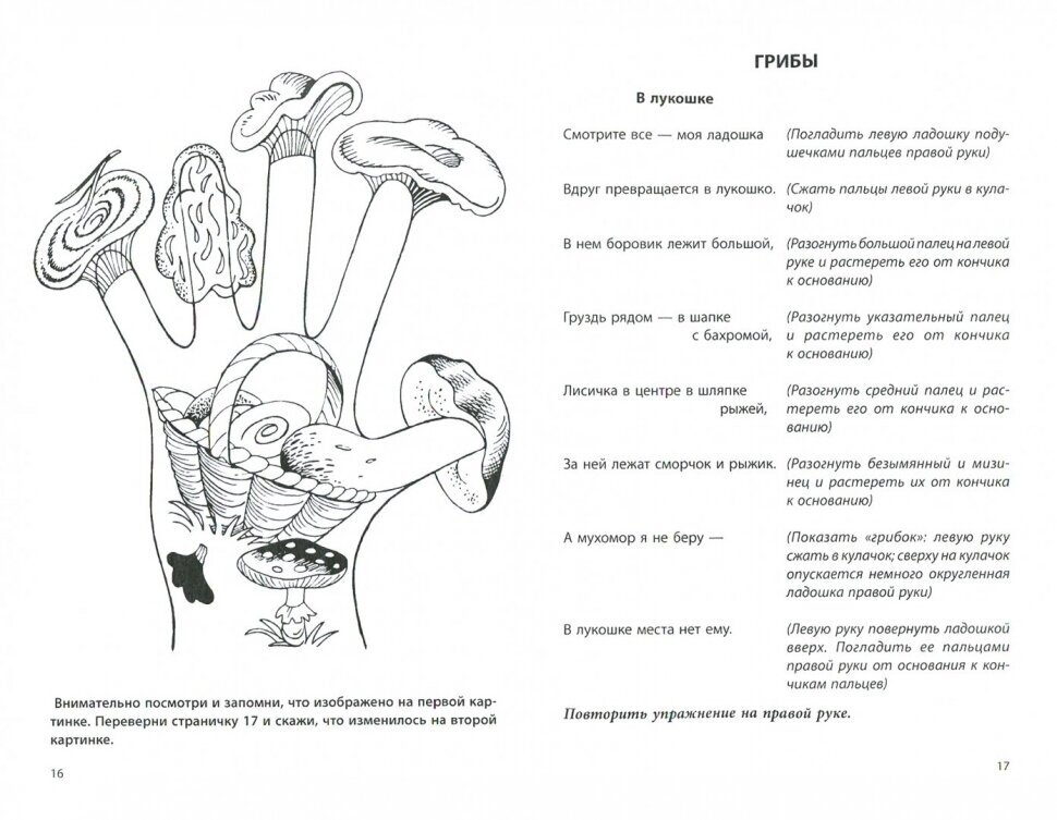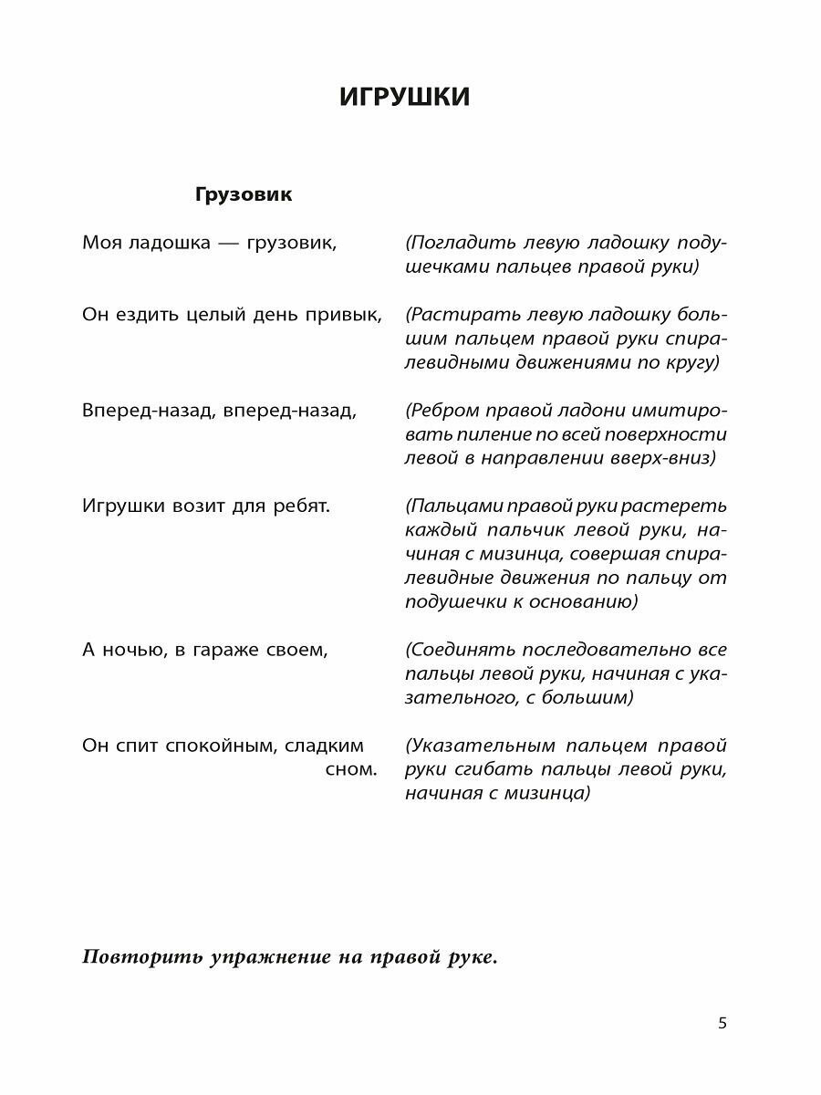 На первом развороте стихи (которые можно выучить с ребенком), а также массажные и игровые движения для развития мелкой моторики.
