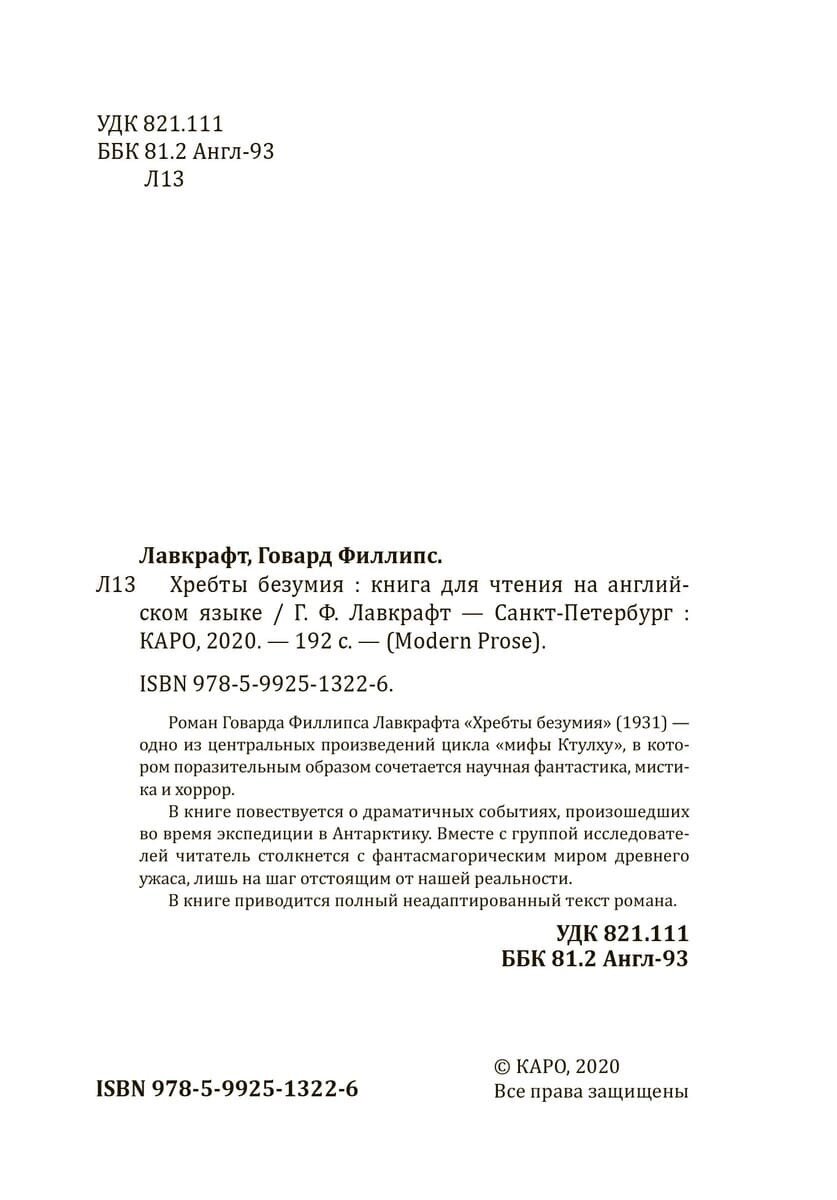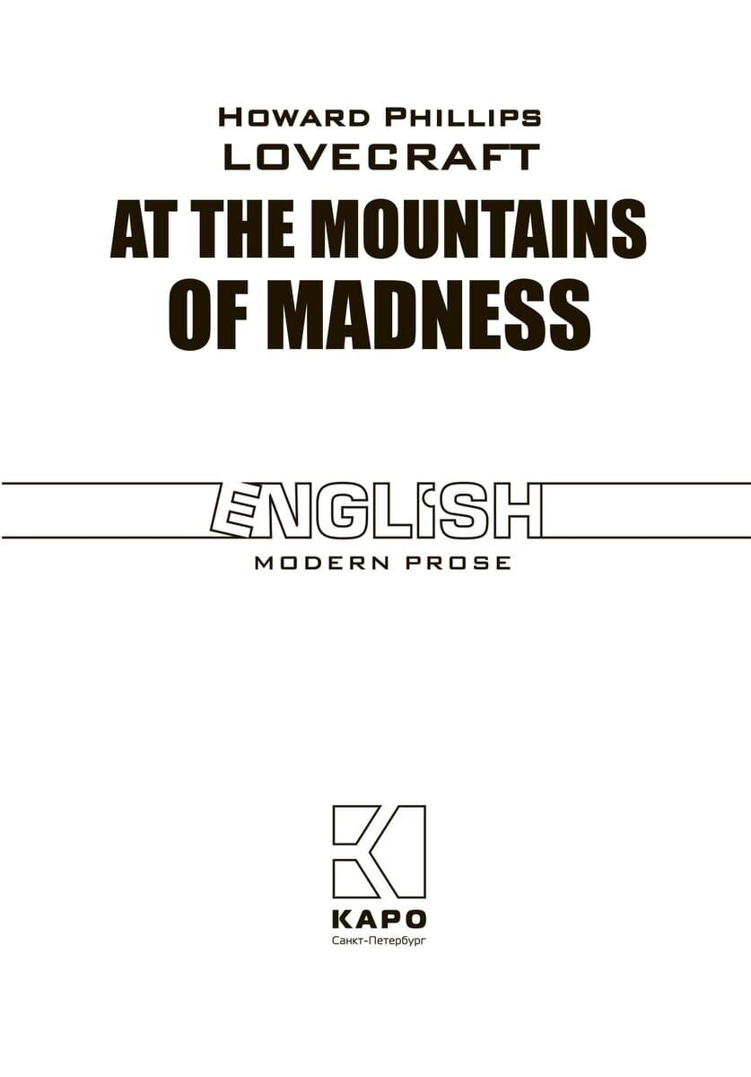At The Mountains Of Madness = Хребты безумия: книга для чтения на английском языке (Говард Филлипс Лавкрафт); КАРО, 1931