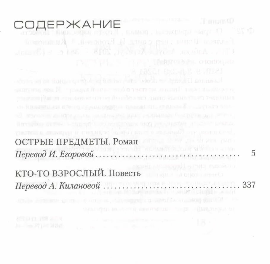 Кроме романа «Острые предметы», в книгу вошла повесть «Кто-то взрослый», представленная в новом переводе.