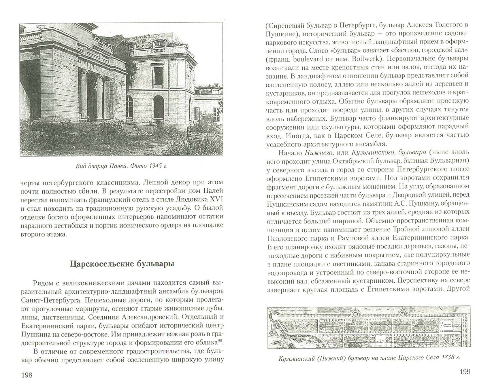 В начале есть небольшой исторический очерк о городе Пушкин. Потом уже идет описание улиц, автор уделяет внимание множеству строений, описывая, когда и почему они были построены, кем, кому они принадлежали, прослеживая их судьбу до сегодняшнего времени, приводит множество интереснейших фактов. Есть раздел посвященный Павловску. Книгу читать просто интересно и познавательно и если вы увлекаетесь историей Петербурга, его пригородов, то вам она, конечно, понравится.