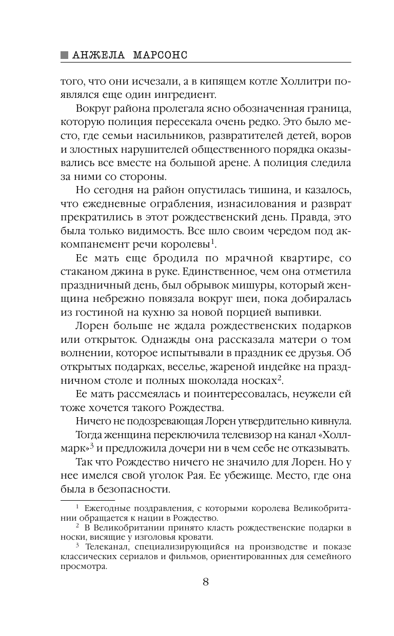 Меня всегда поражает, как западные детективщики умудряются в самое интригующе повествование вставить вполне добросовестный анализ самых актуальных социальных проблем. В данном случае Анжела Марсонс со всех сторон рассматривает проблему современного рабства. как попадают в проститутки хорошие девочки-подростки из приличных семей, что происходит с нелегальными и полулегальными эмигрантами, которые приезжают в богатую, но чужую страну в поисках лучшей жизни. Любопытно, что в такой обертке все эти размышления оказываются очень уместными.