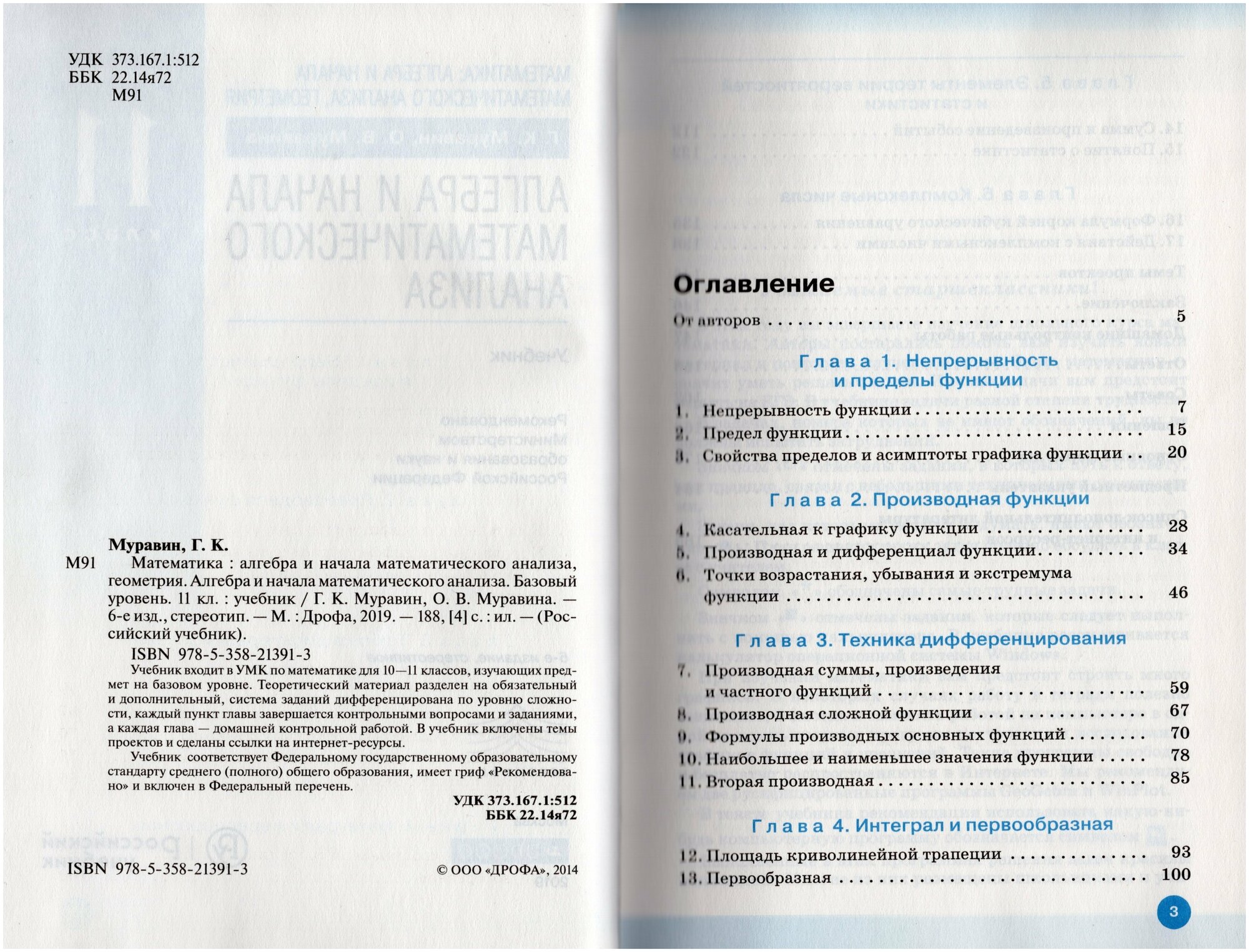 Математика: алгебра и начала математического анализа геометрия. Алгебра и начала математического анализа. 11 класс. Базовый уровень. ВЕРТИКАЛЬ (Муравин Георгий Константинович, Ольга Муравина); ВЕНТАНА-ГРАФ, 2018