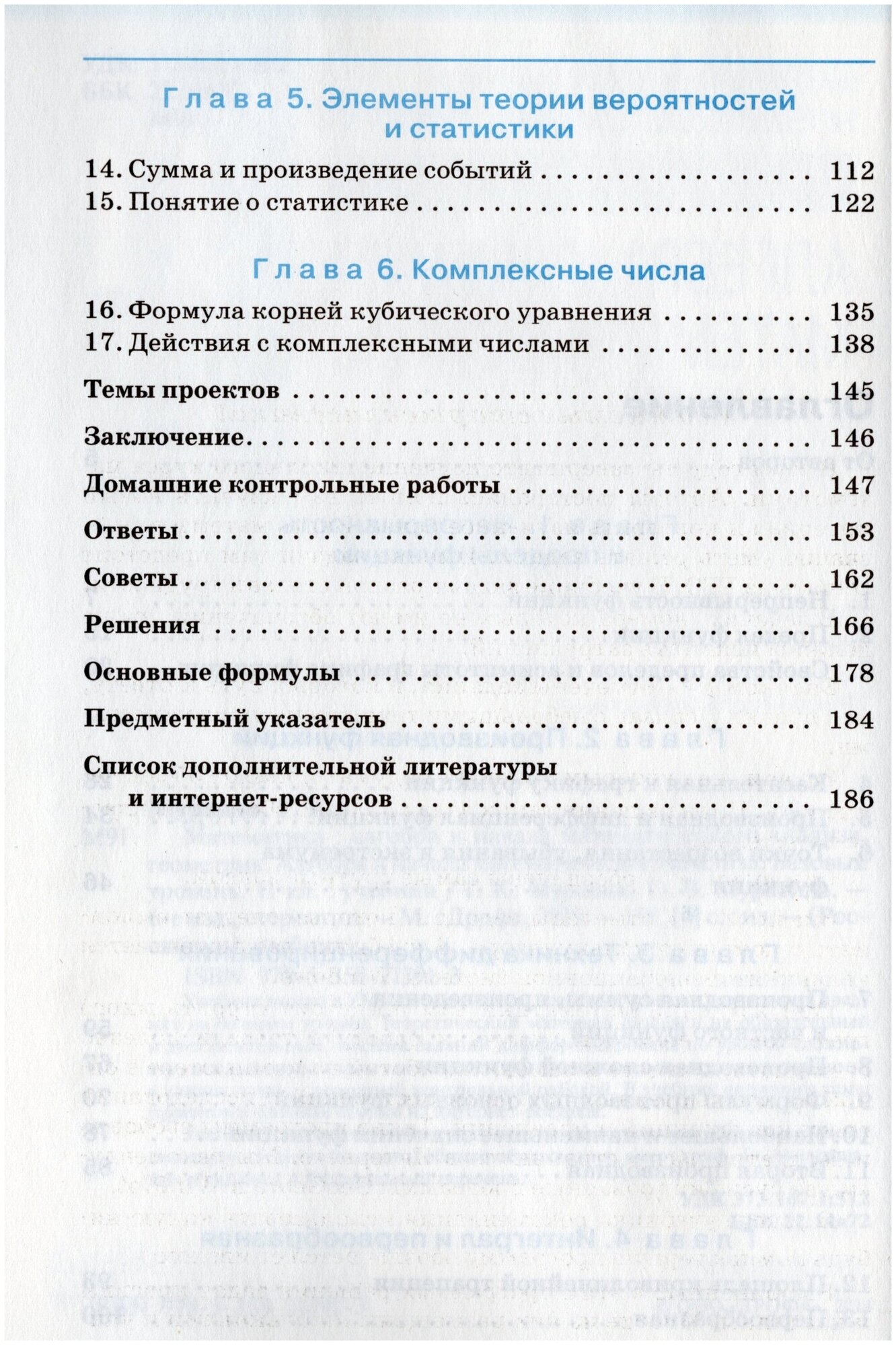 Учебник входит в УМК по математике для 10-11 классов, изучающих предмет на базовом уровне. Теоретический материал разделен на обязательный и дополнительный, система заданий дифференцирована по уровню сложности, каждый пункт главы завершается контрольными вопросами и заданиями, а каждая глава - домашней контрольной работой. В учебник включены темы проектов и сделаны ссылки на интернет-ресурсы.