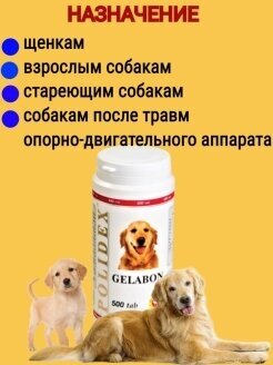 Эффективно профилактирует заболевания хрящевых поверхностей, укрепляет связки и суставы, особенно необходим щенкам в период роста и при больших нагрузках. Способствует устранению "размета передних конечностей", профилактике дисплазии суставов, правильной постановке ушных раковин. Ускоряет реабилитацию после травм, снижает деминерализацию костной ткани у взрослых и стареющих собак.