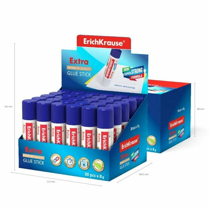 Клей-карандаш Extra c новой суперсильной формулой на PVP-основе с экономичным расходом, максимально быстрым и надежным склеиванием. Легко смывается водой. Не токсичен. Не содержит растворителя. Морозостоек. Подходит для бумаги, картона и ткани.