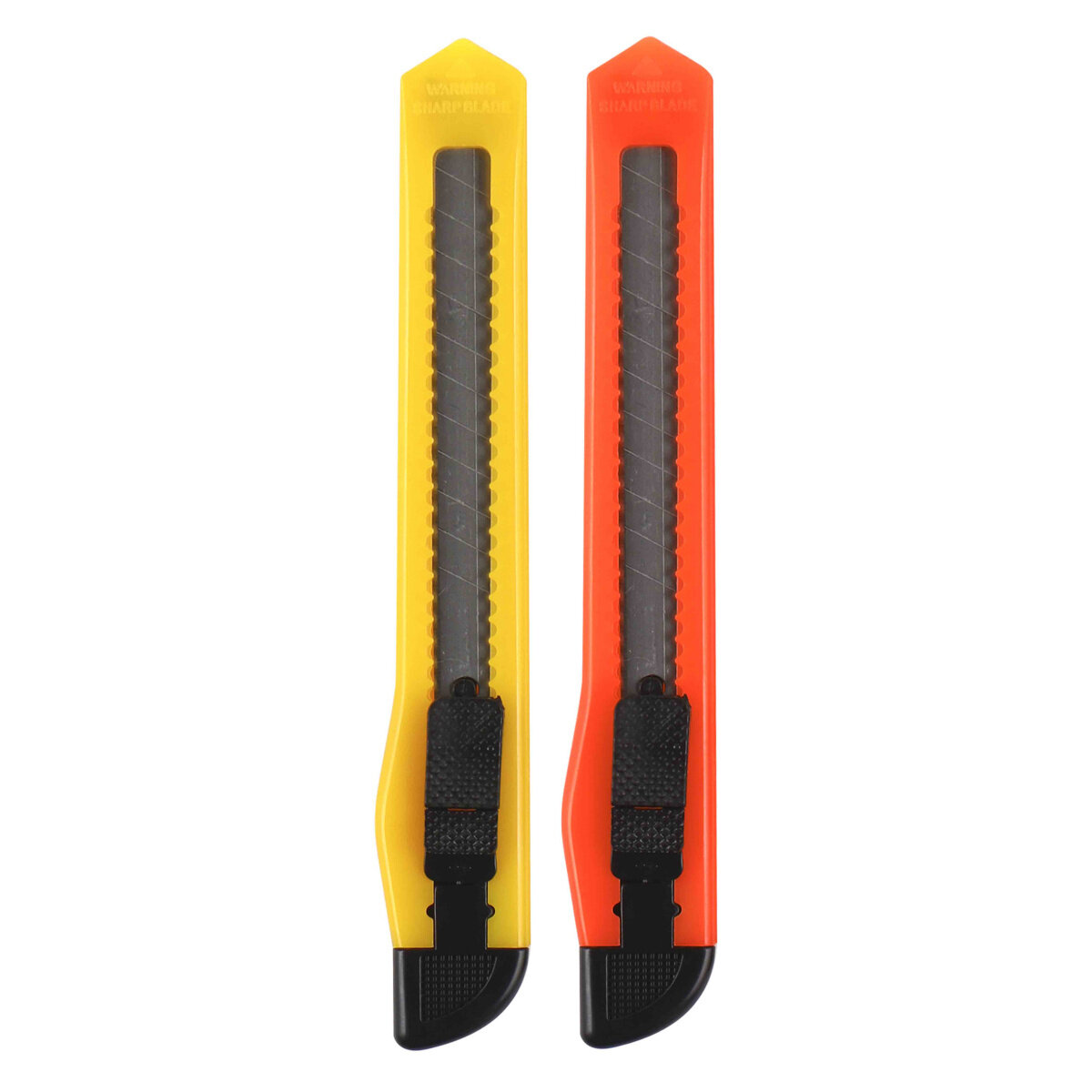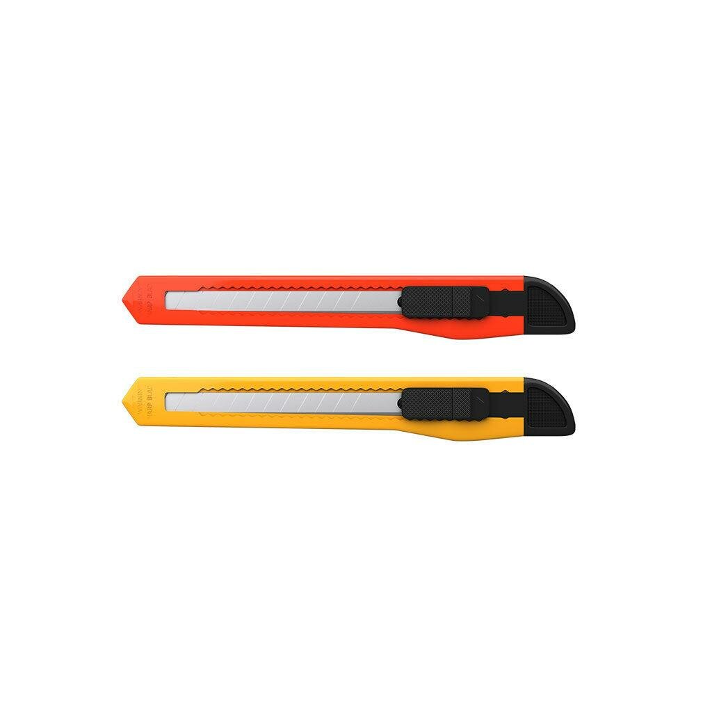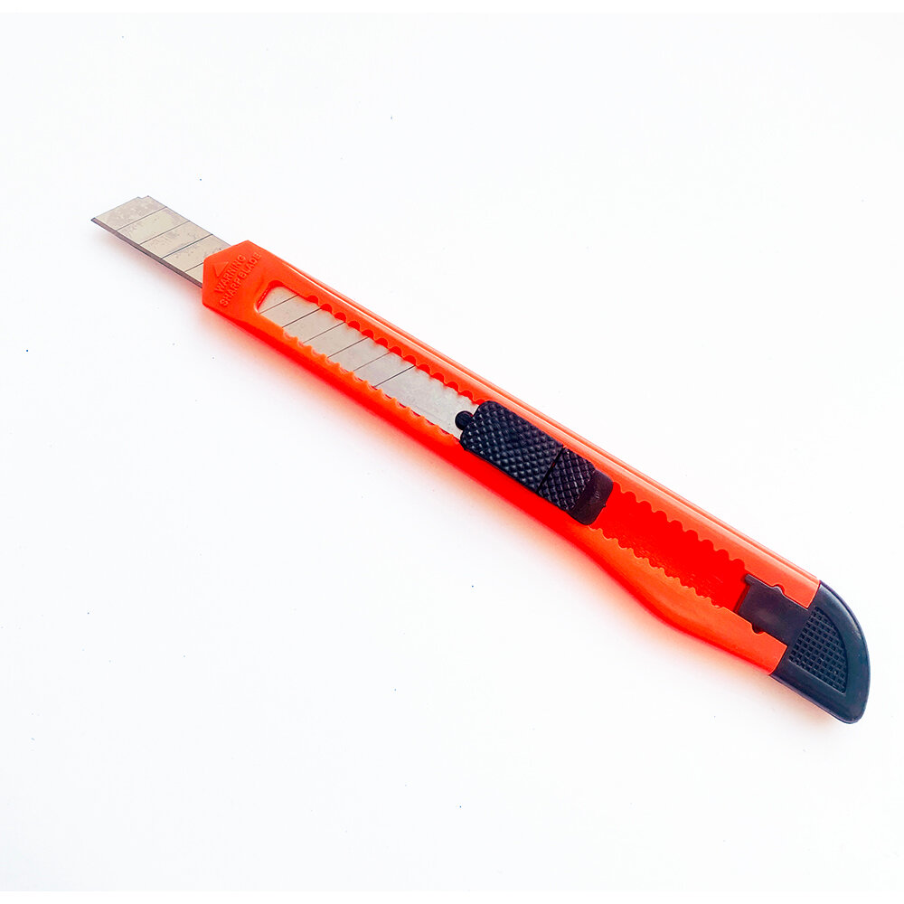 Стандартный нож с механической системой фиксации лезвия «push-lock». Имеет специальную насадку для безопасного отделения сегмента лезвия. Износостойкое стальное лезвие.
