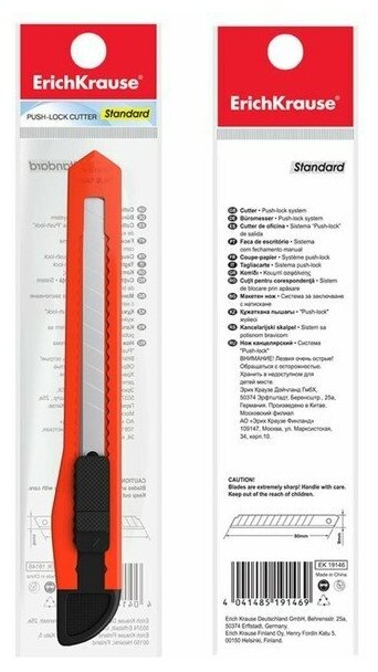 Нож канцелярский длина: 9 мм Erich Krause Standart Standard