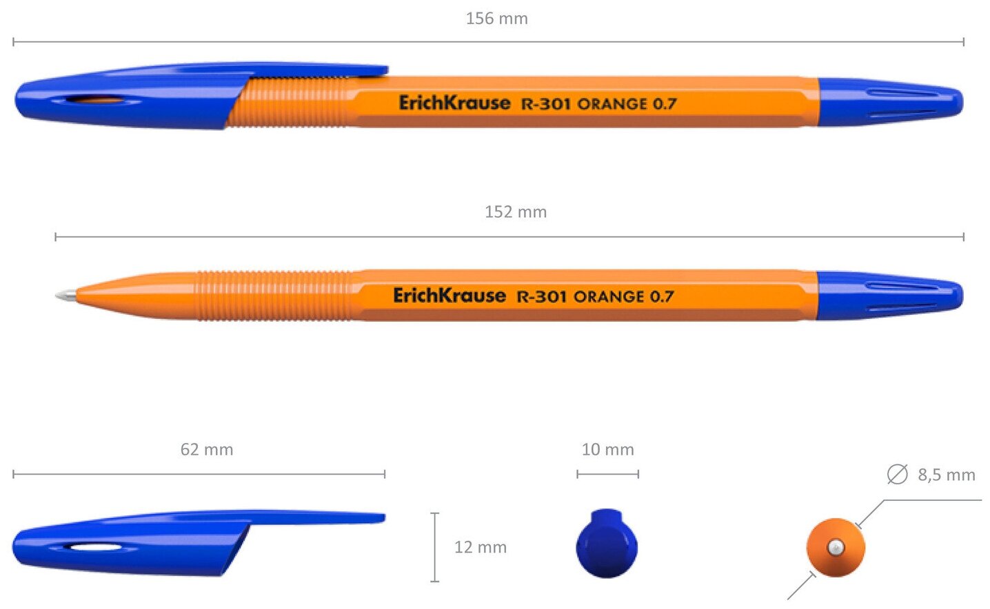 Классическая шариковая ручка Stick&Grip со стандартным типом пишущего узла и заменяемым стержнем. Ручка имеет непрозрачный оранжевый шестигранный корпус с удобной профилированной грип-зоной из резины и вентилируемый колпачок. Цвет колпачка и заглушки соответствует цвету чернил. 5-канальный пишущий узел с диаметром шарика 0. 7 мм в сочетании с быстросохнущими чернилами обеспечивает мягкое и быстрое письмо. Длина непрерывной линии составляет 1000 м при толщине 0. 35 мм, что является одним из лучших показателей в своей категории. Модель R-301 ORANGE 0. 7 Stick&Grip имеет узнаваемую запатентованную форму и стала одним из бестселлеров в ассортименте шариковых ручек ErichKrause® более чем в шестидесяти странах мира.