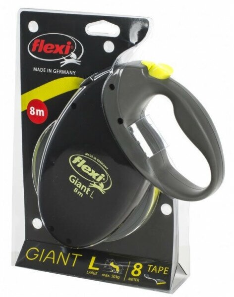 Рулетка для собак Flexi Giant Neon L (светоотражающий ремень) до 50 кг цвет: черный 8м Giant Neon L tape 8 m, for dogs up to 50 kg
