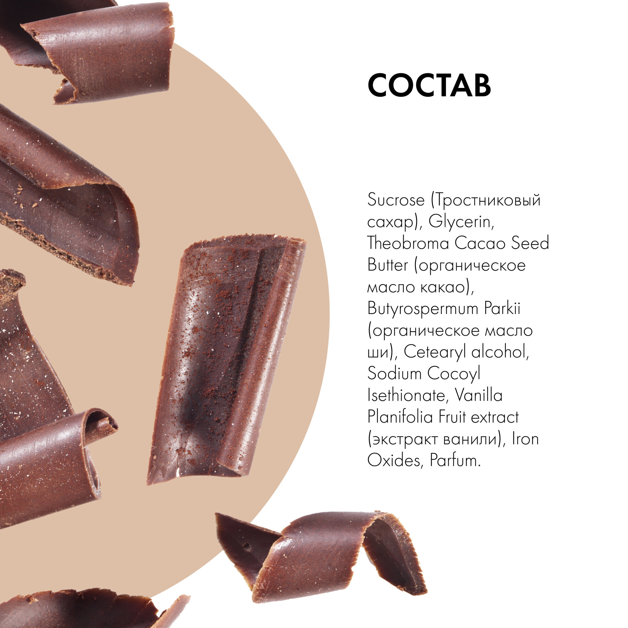 | Химический состав | Тростниковый сахар, Glycerin, Theobroma Cacao Seed Butter (органическое масло какао), Butyrospermum Parkii (органическое масло ши), Cetearyl alcohol, Sodium Cocoyl Isethionate, Vanilla Planifolia Fruit extract (экстракт ванили), Iron Oxides, Parfum. |