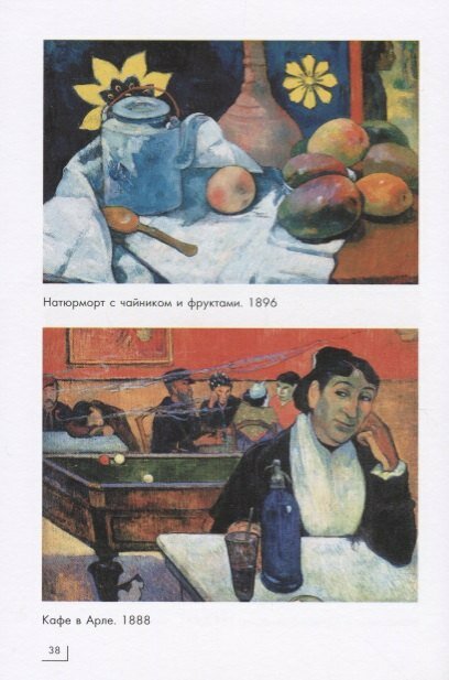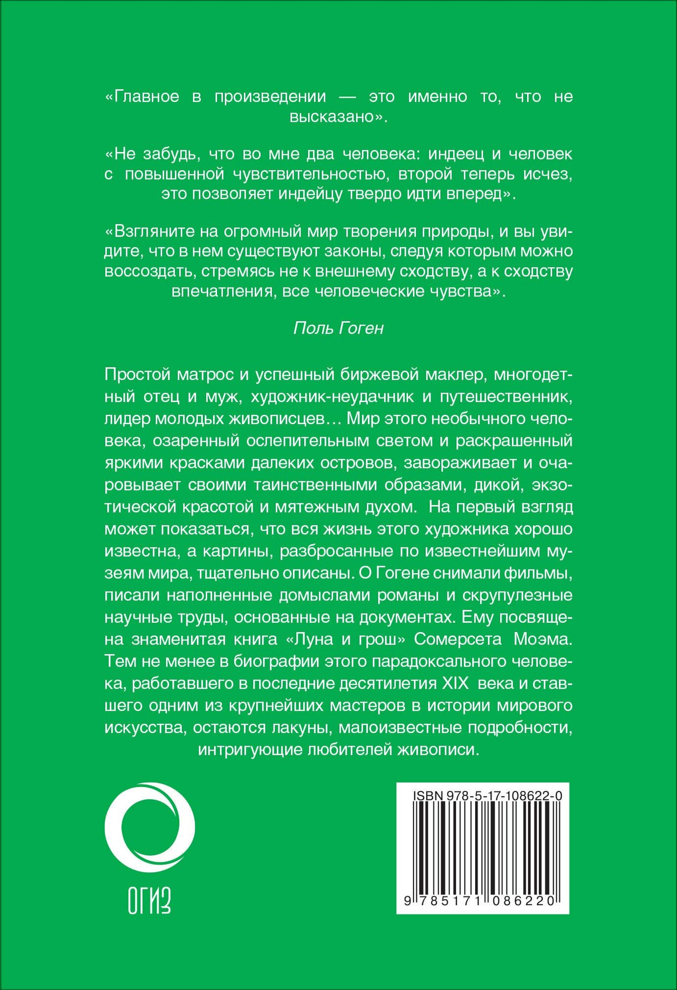 Только яркий представитель глубинного народа мог догадаться издать книги по искусству КАРМАННОГО формата. Так как даже не мог себе такое представить, то каюсь, не посмотрел на размер книги, когда делал заказ. Но более того, на некоторых страницах (не на развороте) размещено аж по две картины - уже и лупа бессильна. Отказаться можно было только от всего заказа, а не по частям, поэтому решил оставить книгу в надежде на содержание. По сравнению с другой книгой из этой серии, "Автопортреты", видно, что текст писал всё-таки искусствовед, а не студент-заочник. Но сверстана книга просто безобразно - сначала идёт текст, а только потом скопом даны иллюстрации картин. Причём картины расположены не в хронологическом порядке, а как вздумается!!! По ходу изложения биографии Гогена, есть описание некоторых картин, но к ним нет указания на какой странице расположена иллюстрация, а ещё часть описанных картин вообще отсутствует в книге. То есть издатель - откровенно сказочный... Качество печати тоже так себе, когда раскрывал книгу в конце чтобы посмотреть иллюстрации, то оторвалась задняя обложка от форзаца примерно на треть - экономят клей. Цветопередача картин - очень плохая, так что был даже разочарован и стал хуже относиться к самому художнику из-за плохой печати. Если вы впервые захотели узнать о работах Гогена или давно интересуетесь его творчеством, то во избежание разочарования - не покупайте такую книгу!