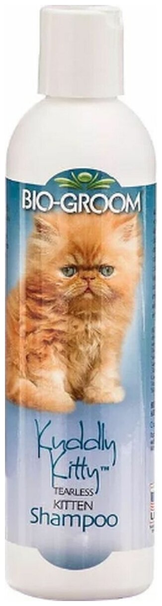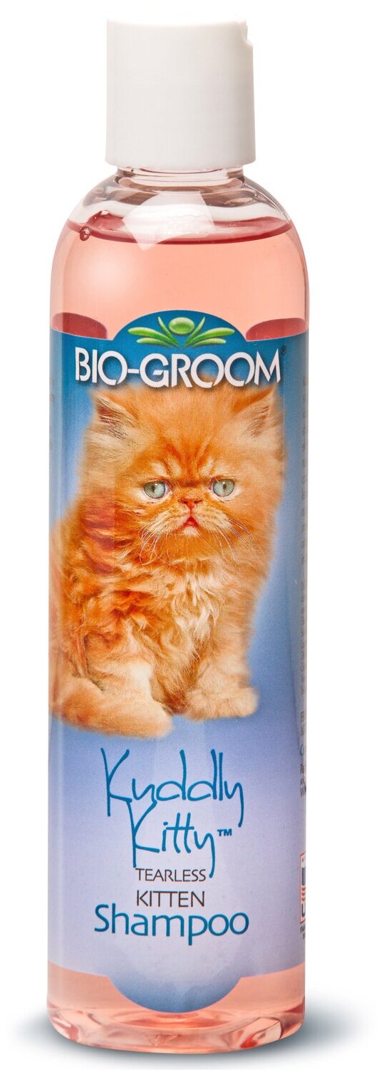 Bio-Groom Kuddly Kitty Shampoo для котят нежный. Шампунь-кондиционер без слез разработан специально для мытья чувствительной кожи и нежной шерсти котят. Шампунь ‘Kuddly Kitty” – это кондиционирующий шампунь без мыла, исключительно натуральный, тщательно очищает без удаления с кожи и шерсти естественных защитных масел. После применения шампуня шерсть котенка чистая и пушистая. Пена быстро и тщательно смывается, даже если котенок проявляет нетерпение. Kuddly Kitty помогает контролировать запах животного, рН-сбалансирован, не раздражает. Применение: Тщательно намочите шерсть теплой водой. Нанесите шампунь и хорошо вотрите в шерсть. Смойте теплой водой. Высушите шерсть мягкой щеткой или с помощью мягкого полотенца. Шампунь можно применять в концентрированном виде или разбавлять двумя частями воды. Объём 237 мл.