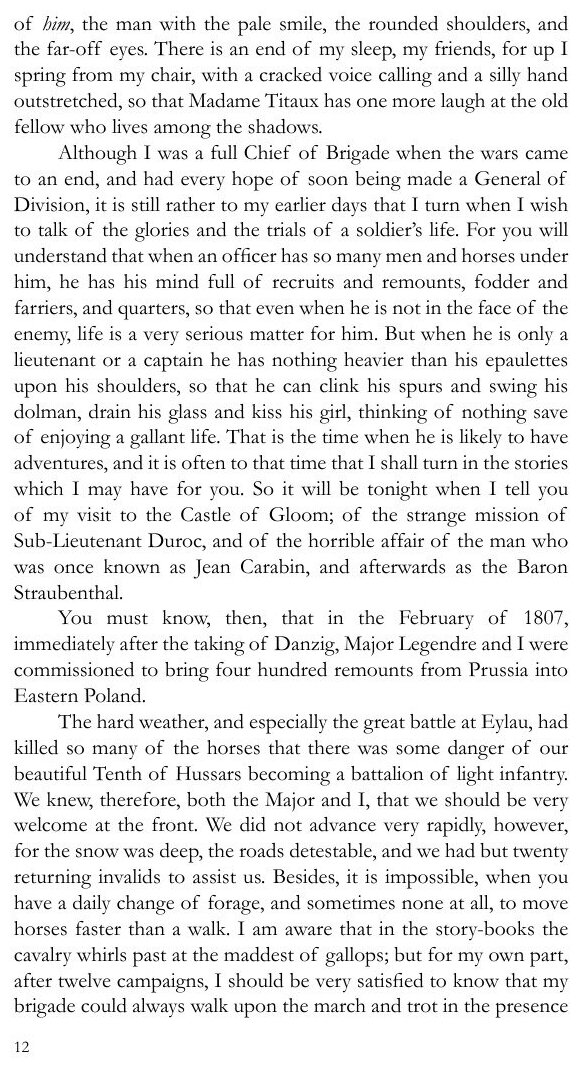 Arthur Conan Doyle (1859 - 1930) was an English writer best known for his detective stories about Sherlock Holmes. This book is one of many wonderful historical stories about Brigadier Gerard, an officer in the French Army during the Napoleonic Wars, the bravest soldier, and one of the most gallant lovers in France.