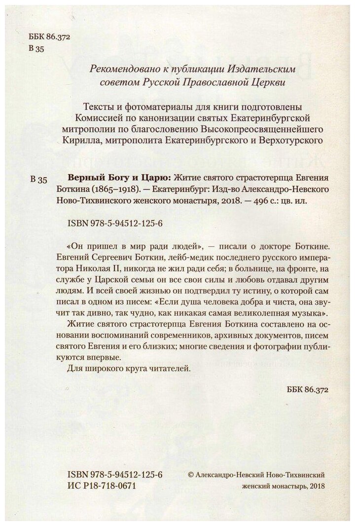 Верный Богу и Царю: Житие святого страстотерпца Евгения Боткина 1865-1918; Александро-Невский Ново-Тихвинский женский монастырь, Екб, 2022