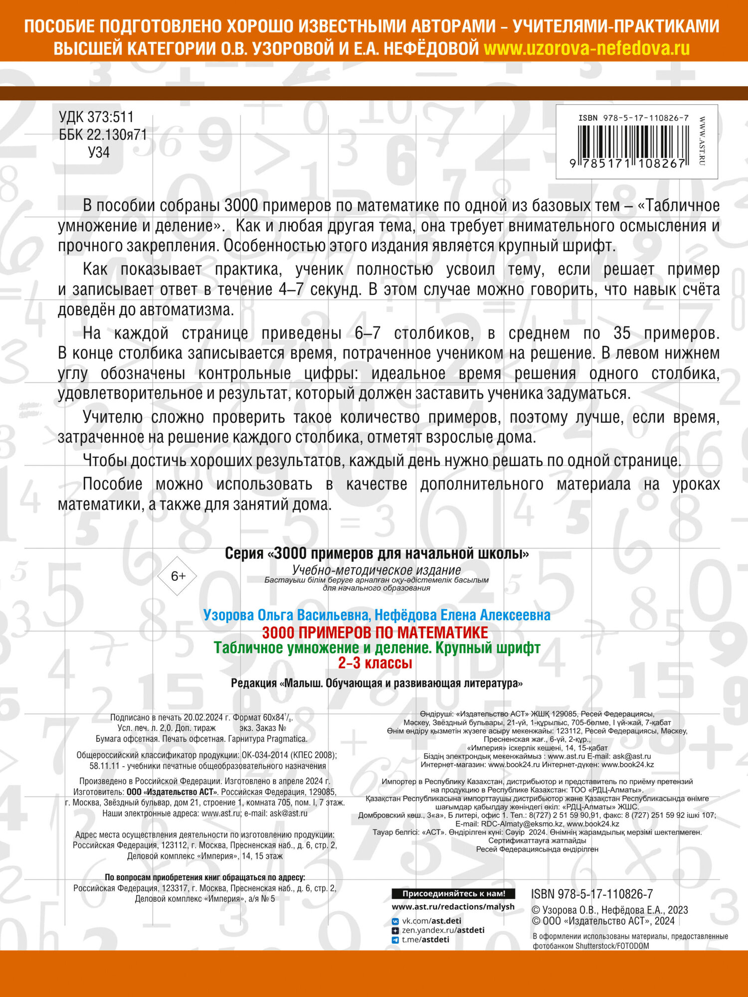 3000 примеров по математике. 2-3 классы. Табличное умножение и деление. Крупный шрифт (Елена Алексеевна Нефедова, Ольга Васильевна Узорова); АСТ, 2025