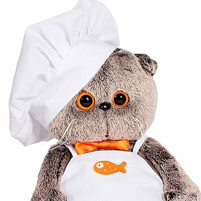 Возраст: от 3 лет. Кот Басик шеф-повар - очаровательная мягкая игрушка от российской компании BudiBasa.Размер игрушки: туловище - 22 см.