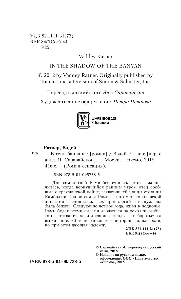 Книга: В тени баньяна (Вэдей Ратнер); Эксмо, Редакция 1, 2018