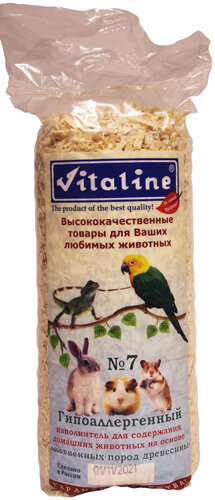 Виталайн Опилки гипоаллергенные из лиственных пород древесины №7Наполнитель "Гипоаллергенный №7" изготовлен на основе стружки лиственных пород древесины. Эти опилки изготавливаются из липы или березы, на новейшем оборудовании. Все опилки обязательно калибруются и тщательно очищаются от любой пыли и примесей - на выходе получается не слишком крупная стружка, которая идеально подходит для любых мелких животных, не причиняет дискомфорта лапкам, не выделяет пыль и не вызывает аллергии. Гипоаллергенные опилки №7 - это экологически чистый продукт, который не имеет в своем составе искусственных добавок, а натуральный древесный запах позволит вашему питомцу чувствовать себя комфортно и в домашних условиях. Использование и утилизация: Опилки насыпать в клетку небольшим слоем, загрязненные опилки удалить из лотка. Специальных правил утилизации нет: лучше всего просто выбросить опилки в мусорное ведро, чтобы не засорять канализацию. Условия хранения: Хранение при температуре +20С и относительной влажности не более 80%. Объем: 14,7 л.
