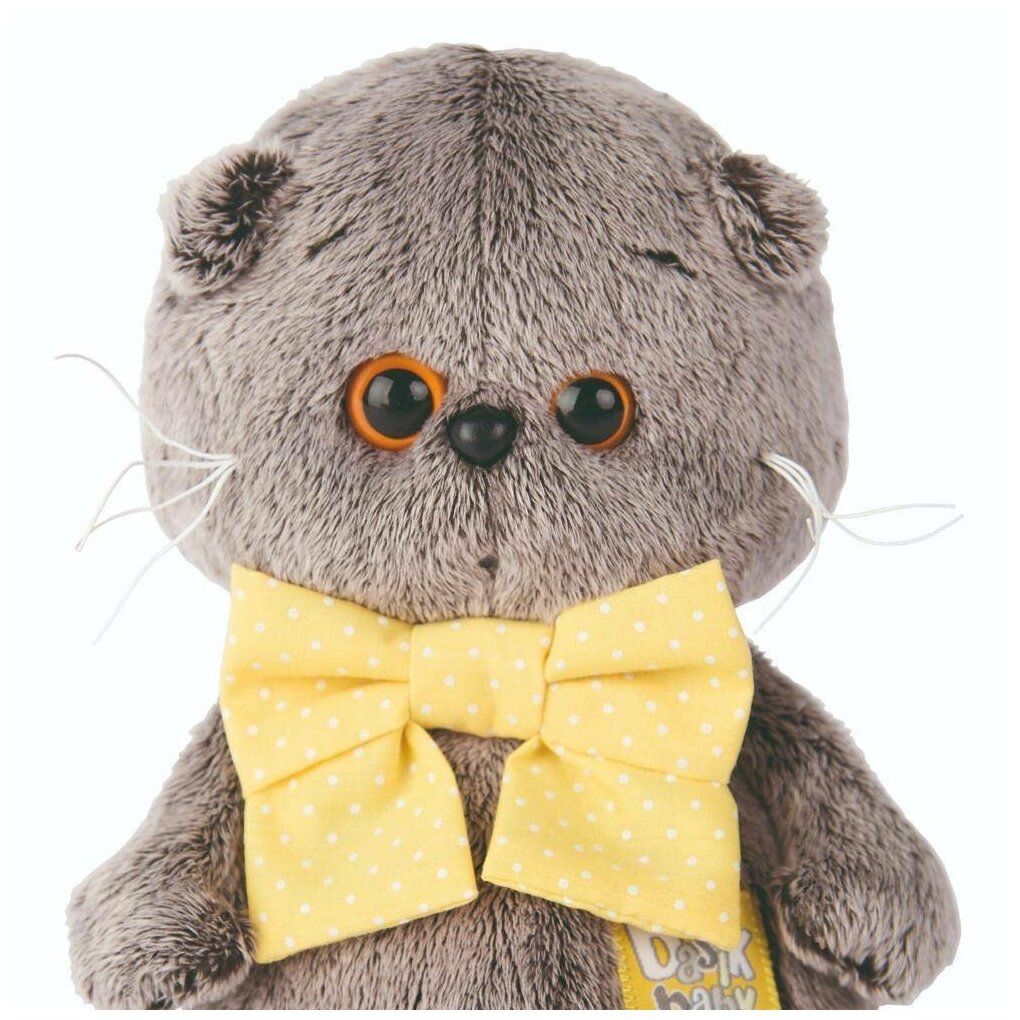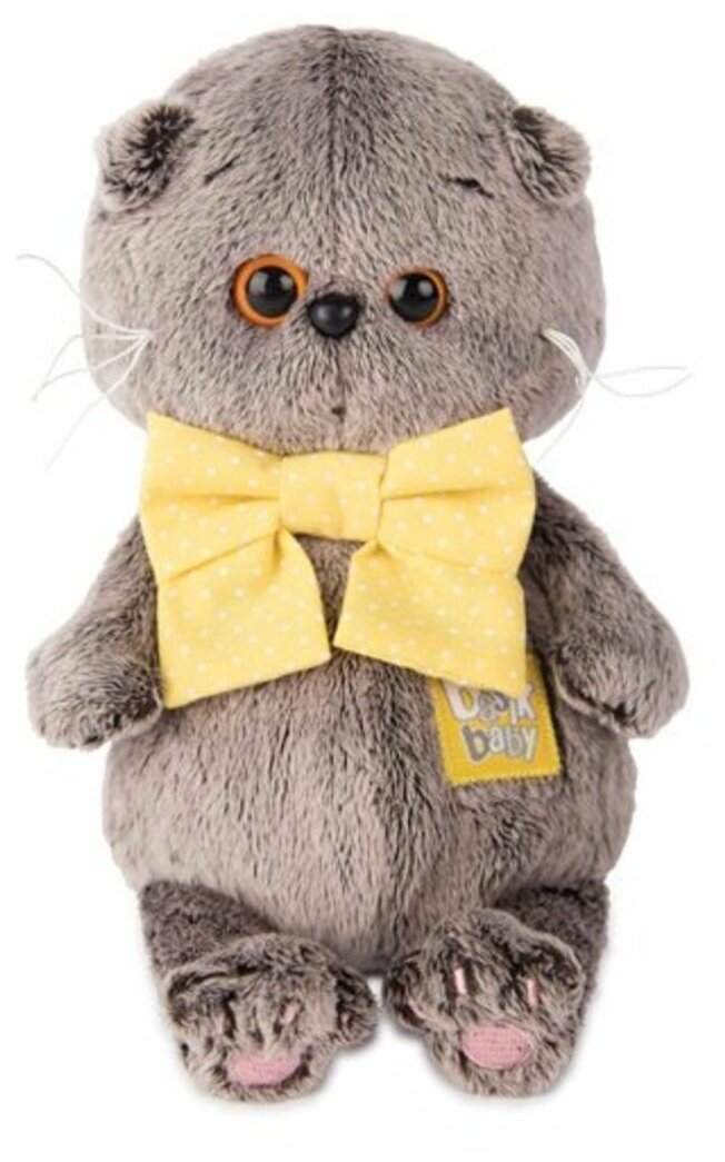 Мягкая игрушка Басик Baby подарит малышу немало прекрасных мгновений.Дети очень трепетно относятся к домашним животным, особенно они любят котов и собак и часто просят своих родителей приобрести им такого друга. Однако домашние питомцы не всегда хорошо влияют на детей - они могут поцарапать и даже вызвать аллергическую реакцию, поэтому приходят на помощь мягкие игрушки, очень похожие на настоящих питомцев. С этим шотландским вислоухим котиком можно играть, отдыхать и засыпать в обнимку, рассказывая свои секреты. У него густая плюшевая шерстка, которую так приятно гладить. У Басика круглые медовые глазки, маленькие ушки и черный носик. Басик очень любит наряжаться и смотреть на себя в зеркало. Повернется то одним боком, то другим. И ждет, чтобы обязательно кто-нибудь сказал ему, какой он красивый. Посмотрите на него. Сегодня Басик повязал очень красивый бант желтого цвета в мелкий горошек. Такого очаровательного котика все будут любить и баловать. Играя, малыш развивает фантазию и воображение, развивает тактильную чувствительность и хватательные рефлексы. Игрушка выполнена из нетоксичных гипоаллергенных материалов и содержит мелкие гранулы, способствующие развитию мелкой моторики у детей.