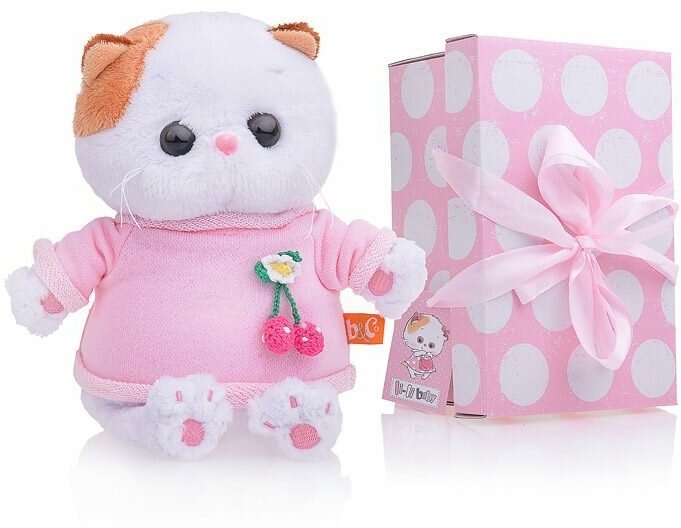 Белая и пушистая кошечка Ли-Ли BABY в толстовке розового цвета с вязаным цветочком на груди, доставит много радости вашим друзьям и близким.
