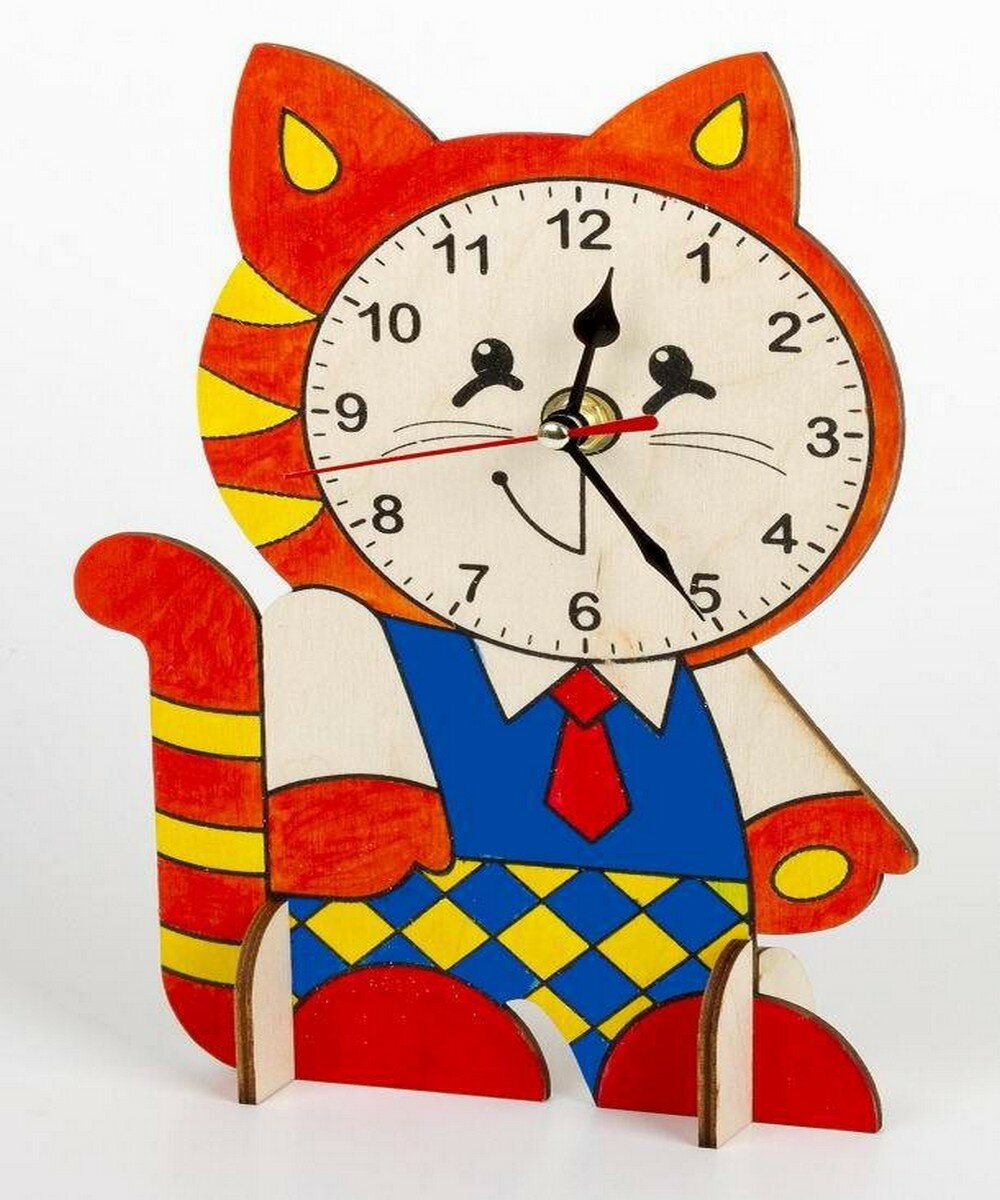 Когда родители хотят преподнести своему чаду подарок, всегда возникает головоломка, ведь подарок должен быть интересным, и в тоже время полезным – развивать мышление, мелкую моторику, творческие навыки. Отличным подарком для девочек и для мальчиков станут «Деревянные часы своими руками Котенок». Они удовлетворяют все вышеперечисленные критерии. С ними ваш ребенок: будет развивать логическое мышление, мелкую моторику оттачивать навыки рисования вырабатывать терпение и выдержку начнет самостоятельно разбираться в инструкциях. Подарите ребенку прекрасное времяпрепровождение за сборкой собственных настольных часов из серии наборов деревянные часы для детей своими руками.