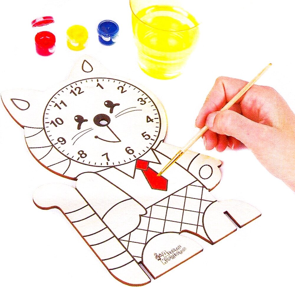 - Набор для творчества. Деревянные часы своими руками (с красками) "Котёнок"