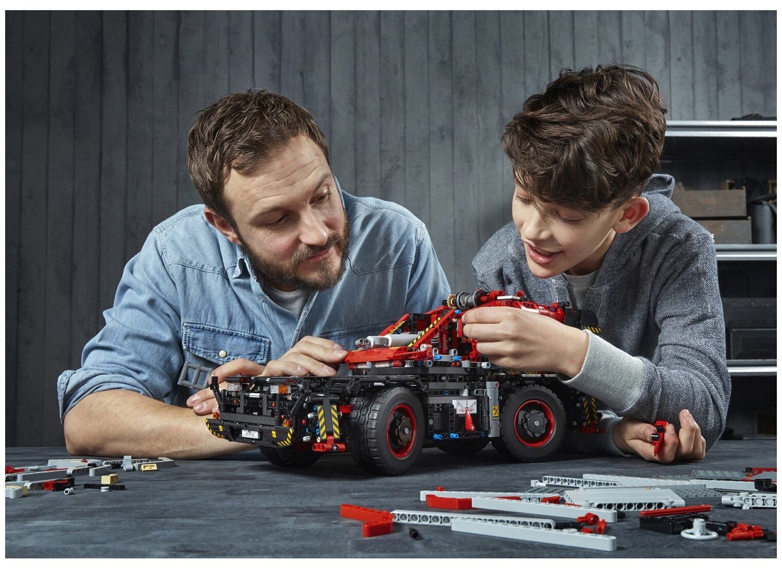 Это набор я получил на свое 31-летие. Последний раз я собирал свой набор Lego Technic 17 лет назад. Как же изменился лего! Модели стали выглядеть как настоящие, минимум дыр, очень высокая детализация. Я получил огромное удовольствие при сборке. Кран выглядит в живую во много раз лучше чем на фотографии. Он просто огромный. Очень понравились механизмы - дифференциалы, полный привод, порталы, редукторы, 3 коробки передач, настоящее рулевое управление и тд. Классная кабина оператора, со сдвижной дверью, открываются люки рядом с мотором. Мой 5-летний сын мне помогал собирать несложные элементы. Сейчас им часто играет. Хорошо работают все функции. Очень рекомендую. Набор идеально подходит юным конструкторам и их папам))