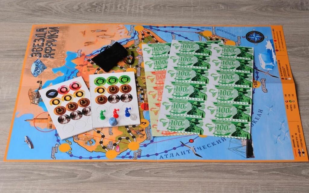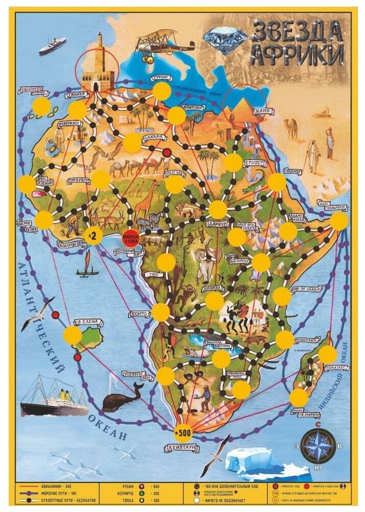 Настольная игра Звезда Африки от производителя Бэмби подарит незабываемое веселье и отдых всей семье. В игре предстоит захватить знаменитый алмаз, который был обнаружен во время раскопок в начале ХХ века, и добраться вместе с ним в Танжер или Каир. В данном игровом наборе можно найти настоящий драгоценный камень, выполненный из горного хрусталя, и мешочек для его хранения, что превратит игру в более реалистичную и живую. Игра рассчитана на участие не более 4 человек. Также в комплекте присутствуют игровые денежные купюры и картонные жетоны.