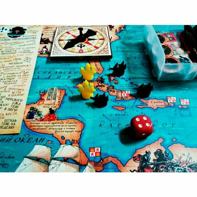 | Состав набора | игровое поле, 9 фишек кораблей, 24 подставки, 24 наклейки, 15 жетонов, 3 карточки груза, 24 карточки пиратов, компас-вертушка, карточка пиратских ругательств |