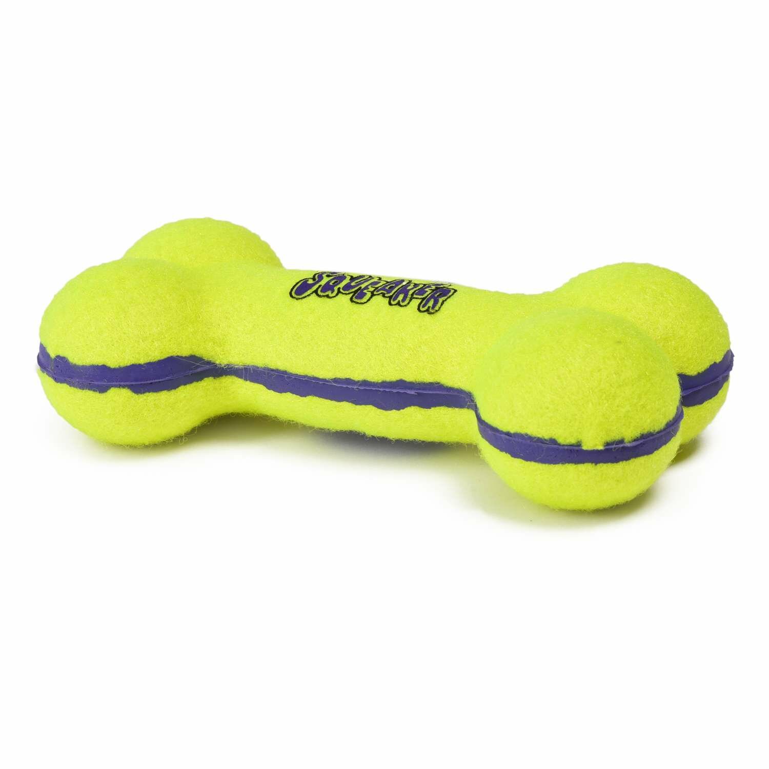 В игрушке KONG Air объединены 2 традиционные собачьи игрушки — теннисный мячик и пищалка, что делает ее идеальным выбором для игр с апортом. Наш прочный высококачественный мячик не повредит зубов собаки. В отличие от традиционных теннисных мячей, он изготовлен из особого неабразивного войлока.