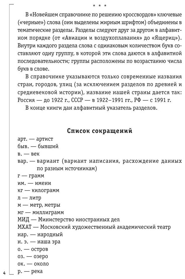 Эта книга станет великолепным подарком и незаменимым помощником всем любителям кроссвордов. Справочник построен по принципу ключевых слов, сгруппированных в разделы и расположенных в алфавитной последовательности. Так что вы без труда найдете интересующую вас область знания или человеческой деятельности и столь же быстро обнаружите требуемое слово. Объем различных терминов, представленных в книге, удовлетворит даже самого взыскательного и эрудированного читателя.