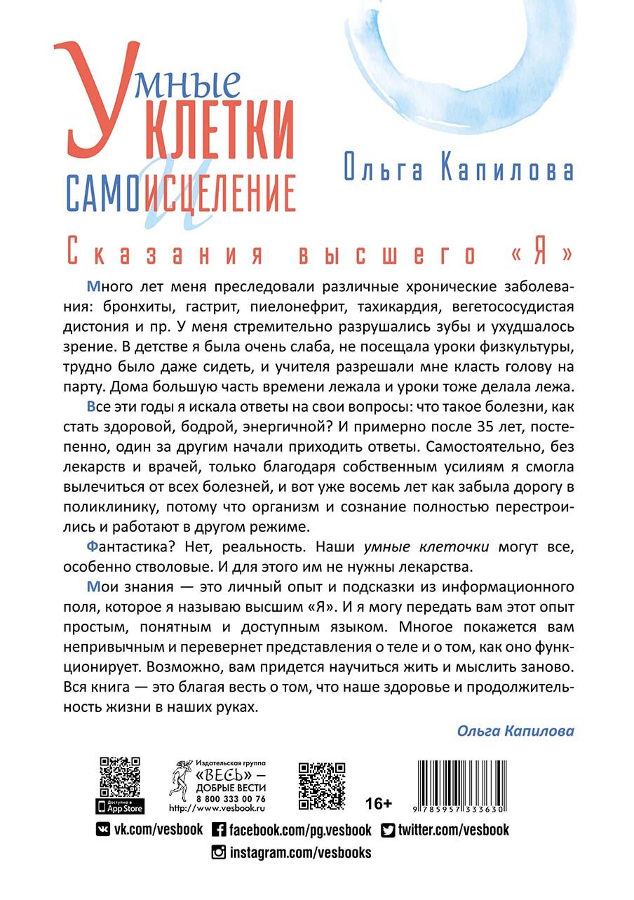 Сервис сравнения цен СкидкаГИД предлагает сравнить цены на товар «Книга: Умные клетки и самоисцеление. Сказания высшего Я (Капилова Ольга); Весь, 2018»