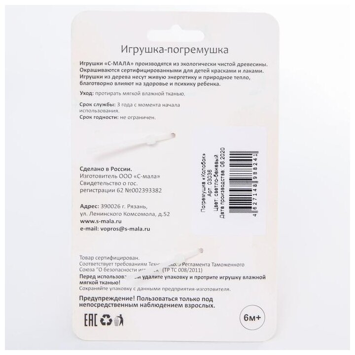 Рекомендованный возраст: с 6 мес. Материал: дерево Изготовлена из экологически чистой древесины. Окрашена сертифицированными для детей красками и лаками. Игрушки из дерева несут живую энергетику и природное тепло благотворно влияют на здоровье и психику ребенка.