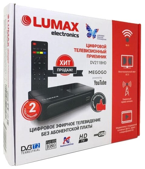 - Lumax DV2118HD. Обзор цифровой приставки DVB-T2 + DVB-C + Megogo + YouTube + Meecast + Кинозалы+ 5.1